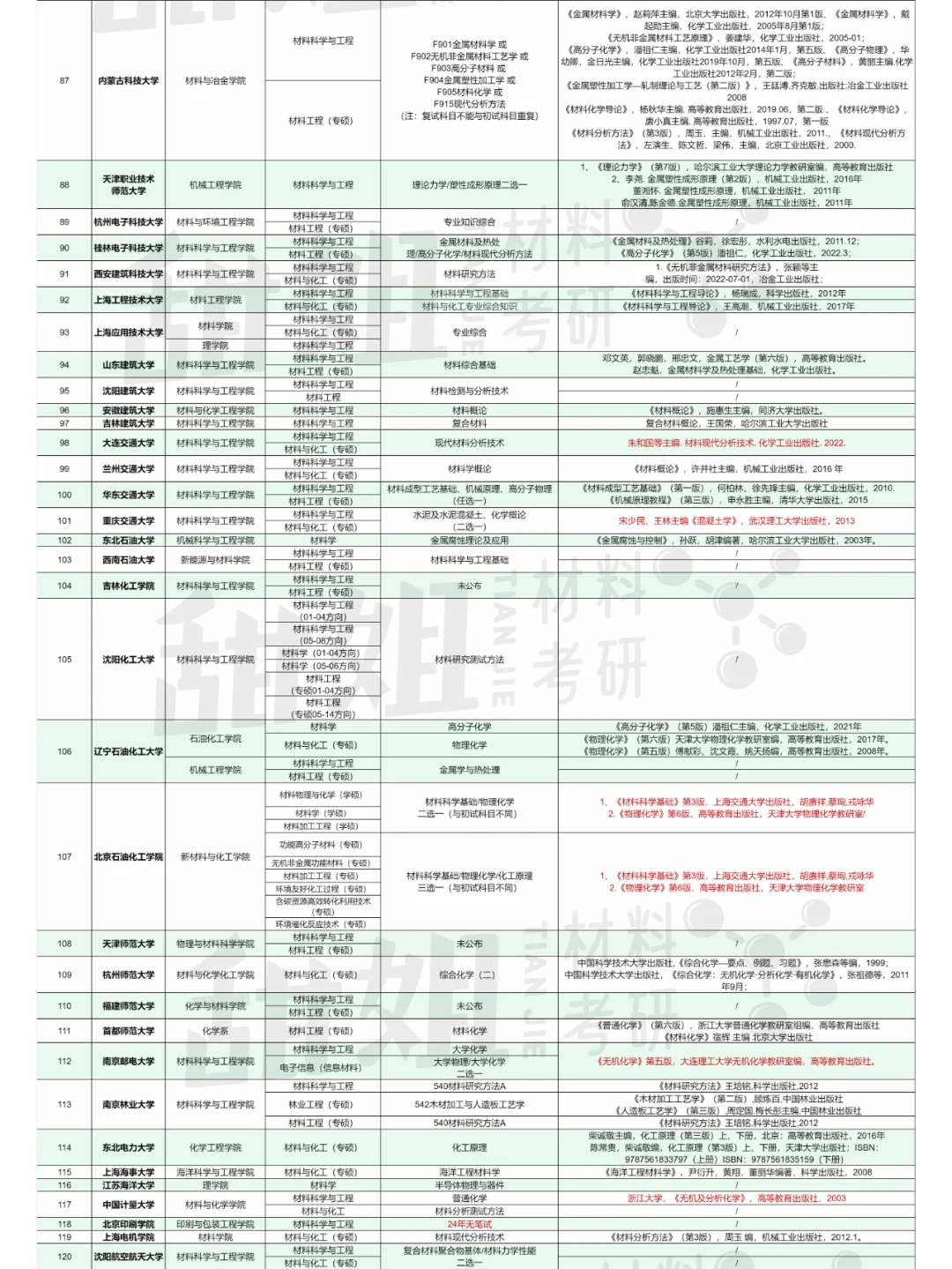 25材料考研复试笔试科目汇总(双非篇下)