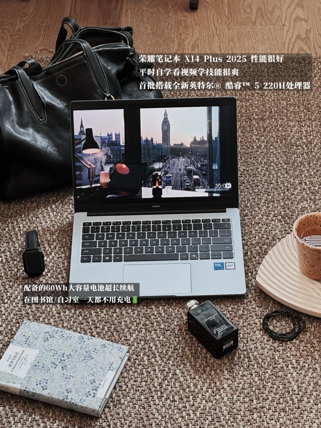 ▪️我学技能很看性能,荣耀笔记本 X14 Plus是全新英特尔® 酷睿™ 5 220H处理器,采用Intel 7工艺和最高为12核16线程。配备60Wh大容量电池,可超长续航,自学一天都不用充电