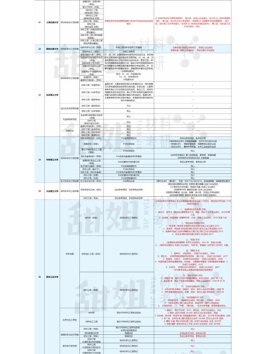 25材料考研专业课难度分析汇总(一)