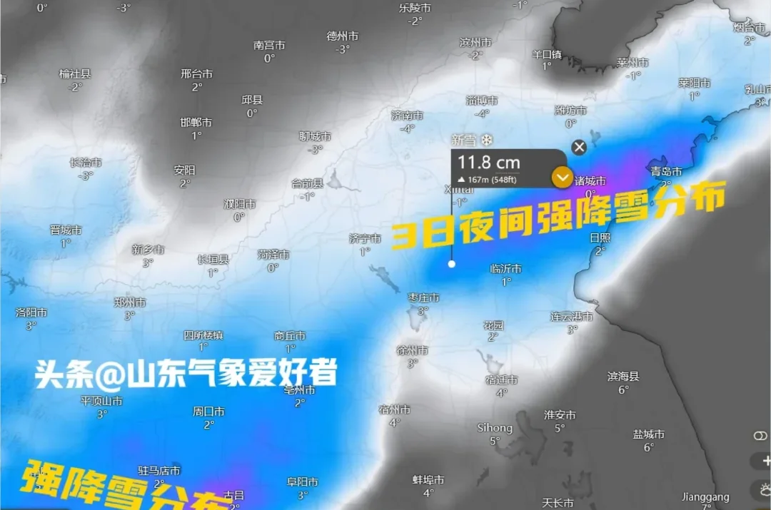昨天(2日)鲁西北、鲁中多地出现大暴雪甚至特大暴雪,济南更是打破当地小时降雪历史记录,这让南部和东部地区的朋友好不羡慕[吐舌头H]