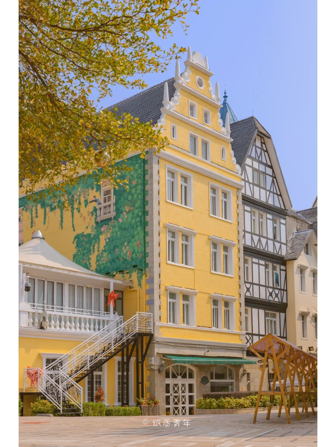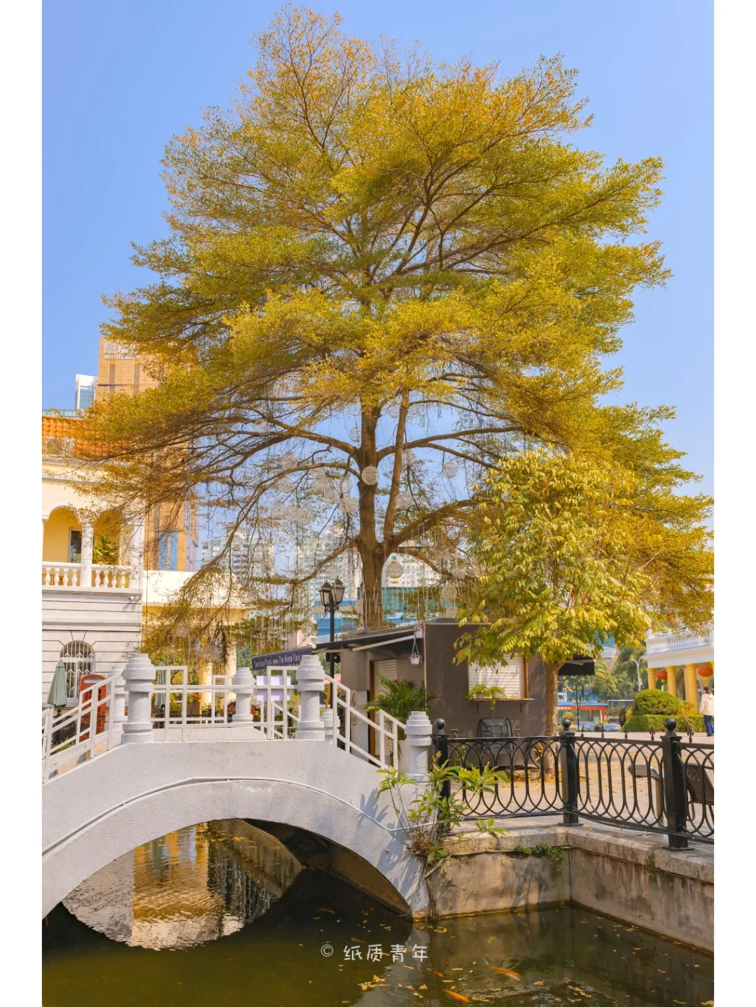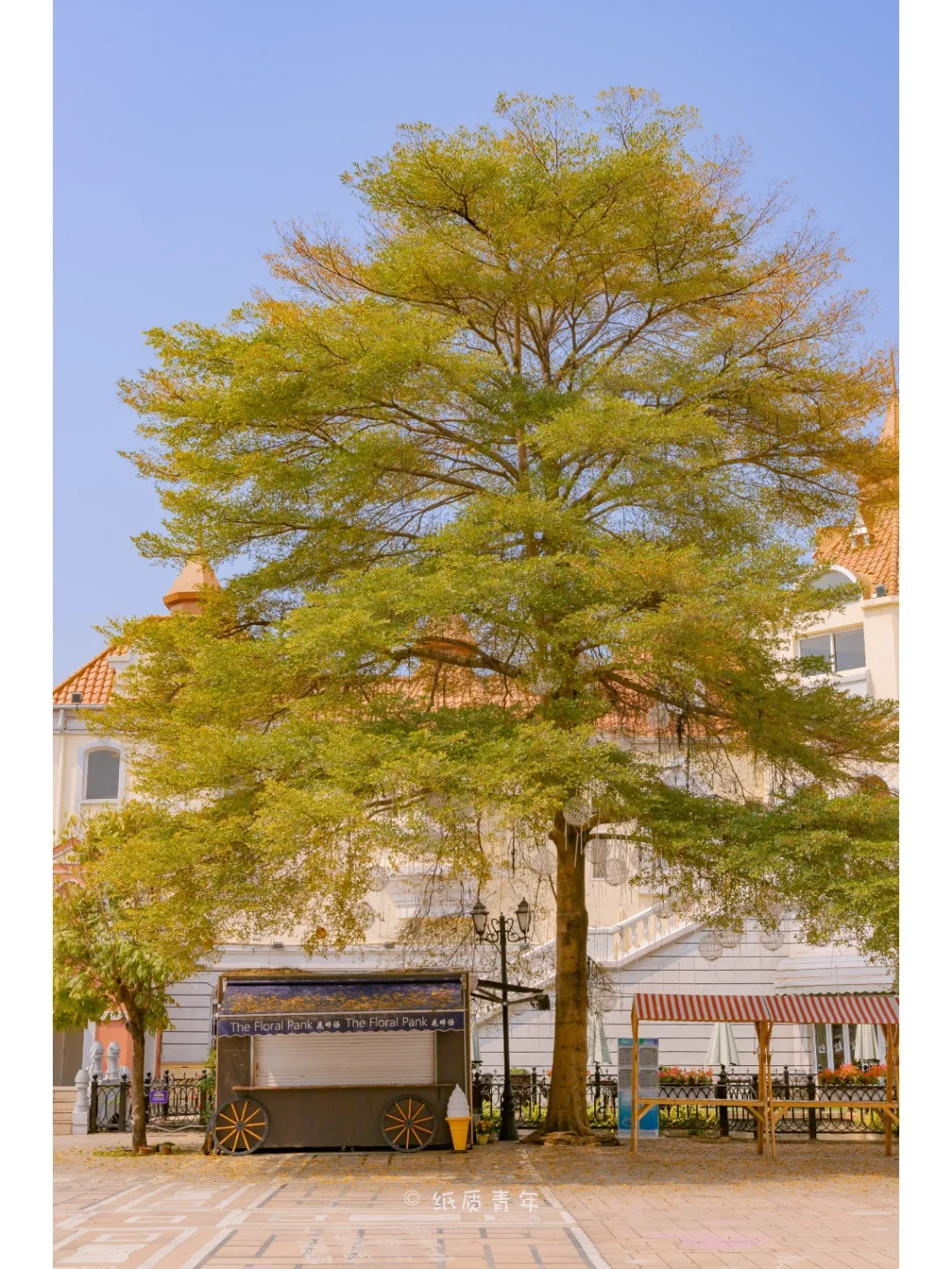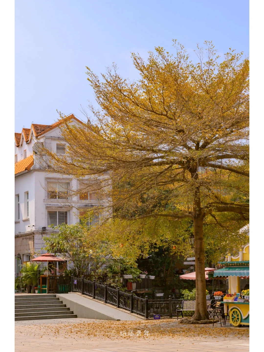 🏤最近发现一个非常适合网红打卡的欧洲小镇,印象派的欧洲风格拍照非常出片。🌿本来是春暖花开的季节,🍂深圳的小叶榄仁树却到了树叶凋零的时候,不知道的还以为进入了秋天。