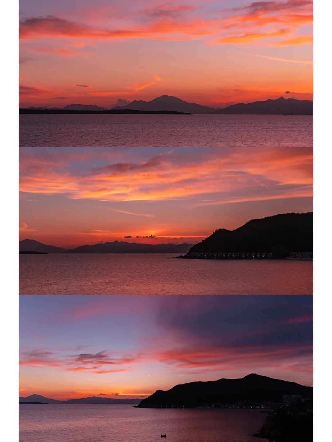 5️⃣一天当中更建议日落前后时观看海景,日落时分可以看到整片海景的暖色调,日落后有机会看到晚霞,以及浪漫的蓝色时刻。