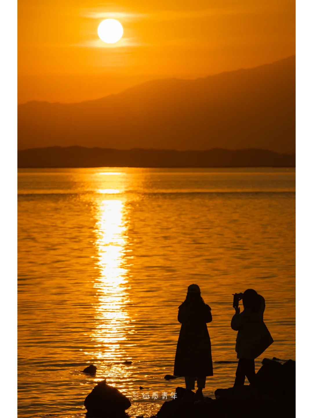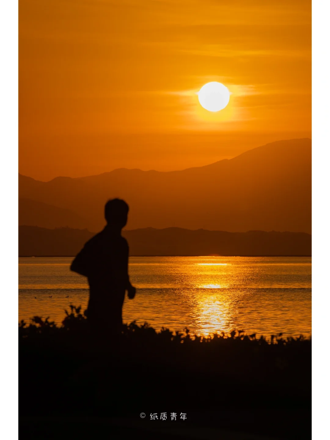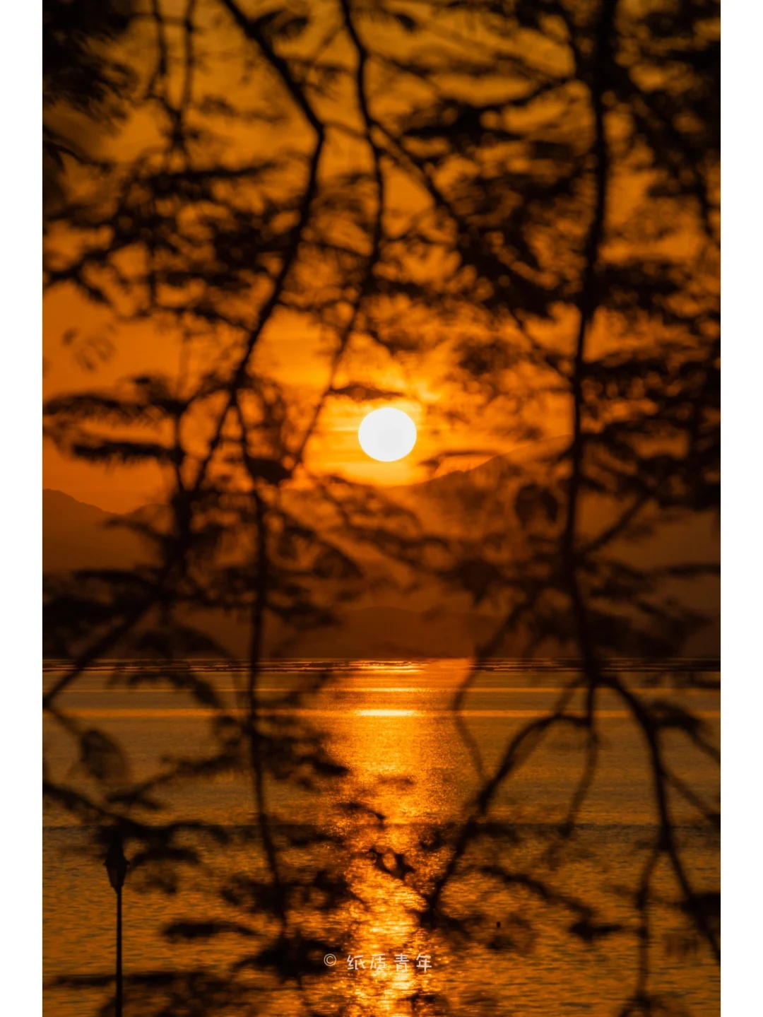5️⃣日出后的20分钟内也能拍出不错的剪影效果,☀️太阳的倒影显得格外明亮。