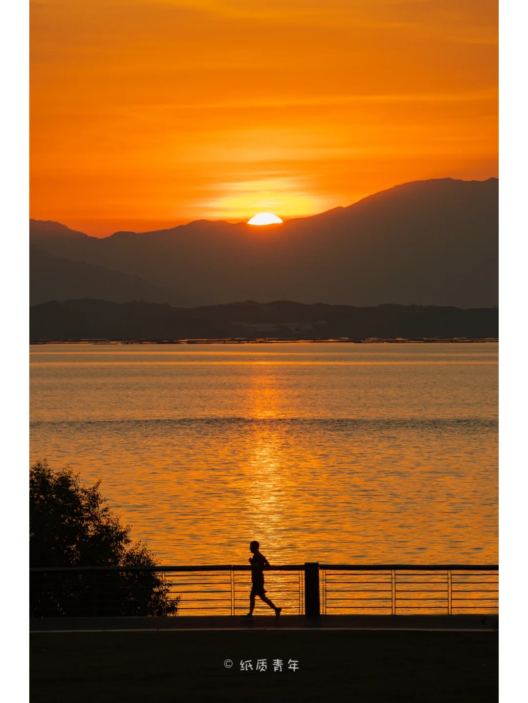 3️⃣🌅太阳还没出来的时候可以提前找好机位,前景、中景、远景,找一些树叶当前景,🏃🏻晨跑做衬托,画面会显得更有故事感
