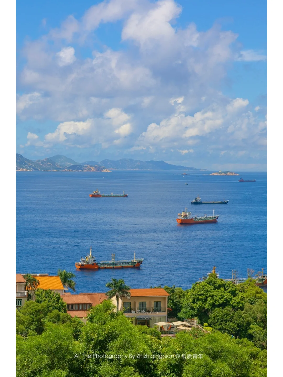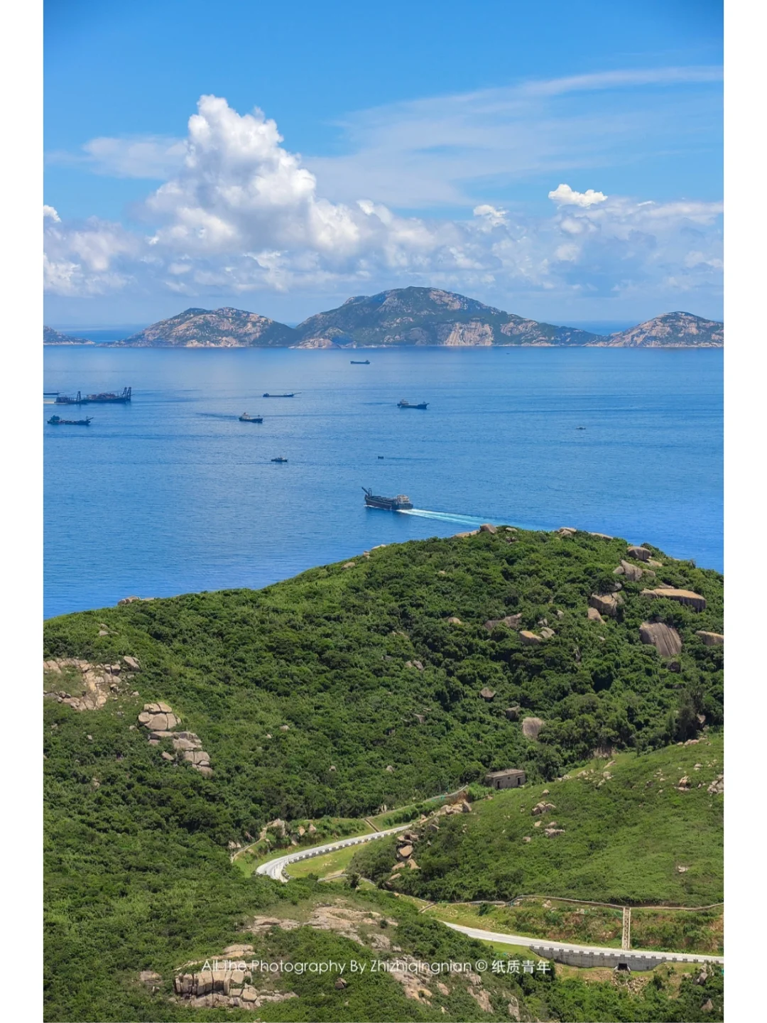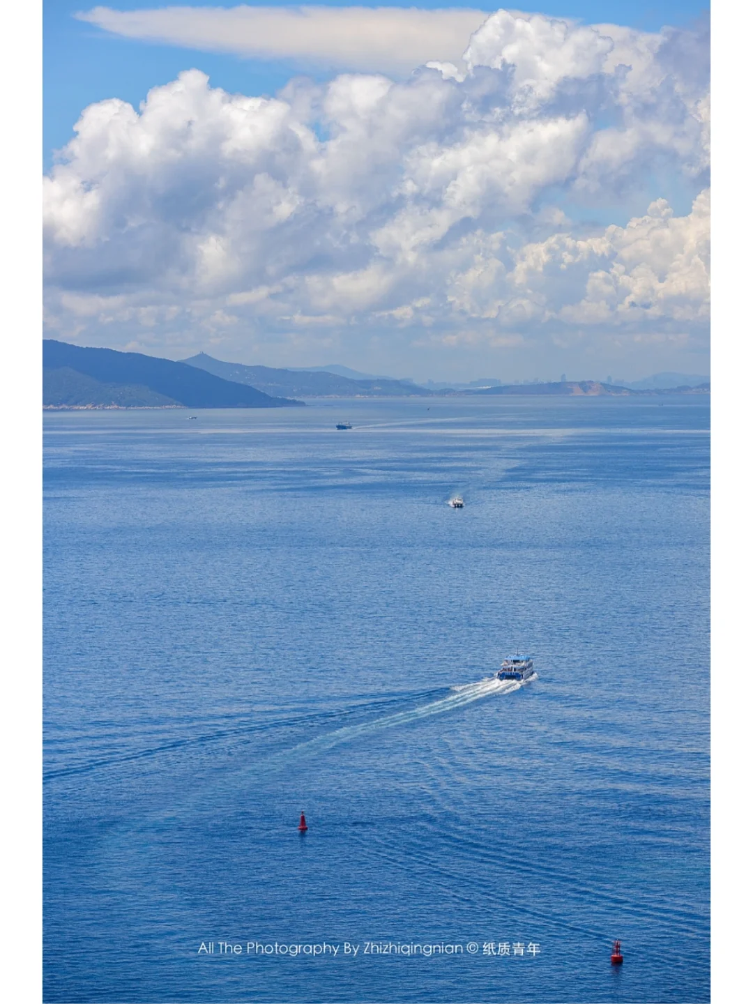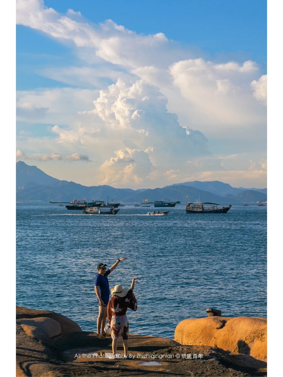 2️⃣登岛的时间大概是上午十一点半,可以先到民宿放好行李登山。因为中午的空气非常通透,顶头拍摄没有大光笔,出片率较高。