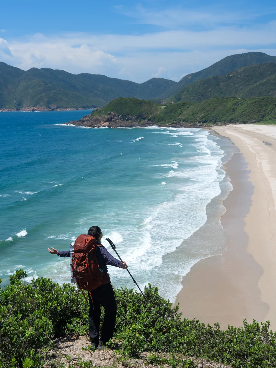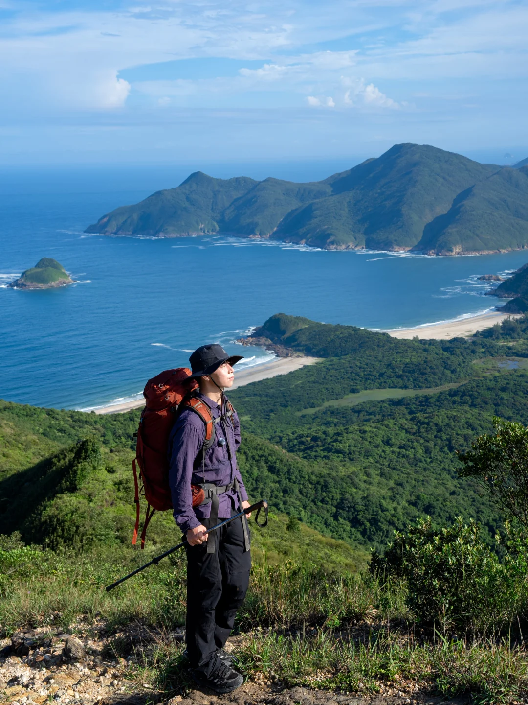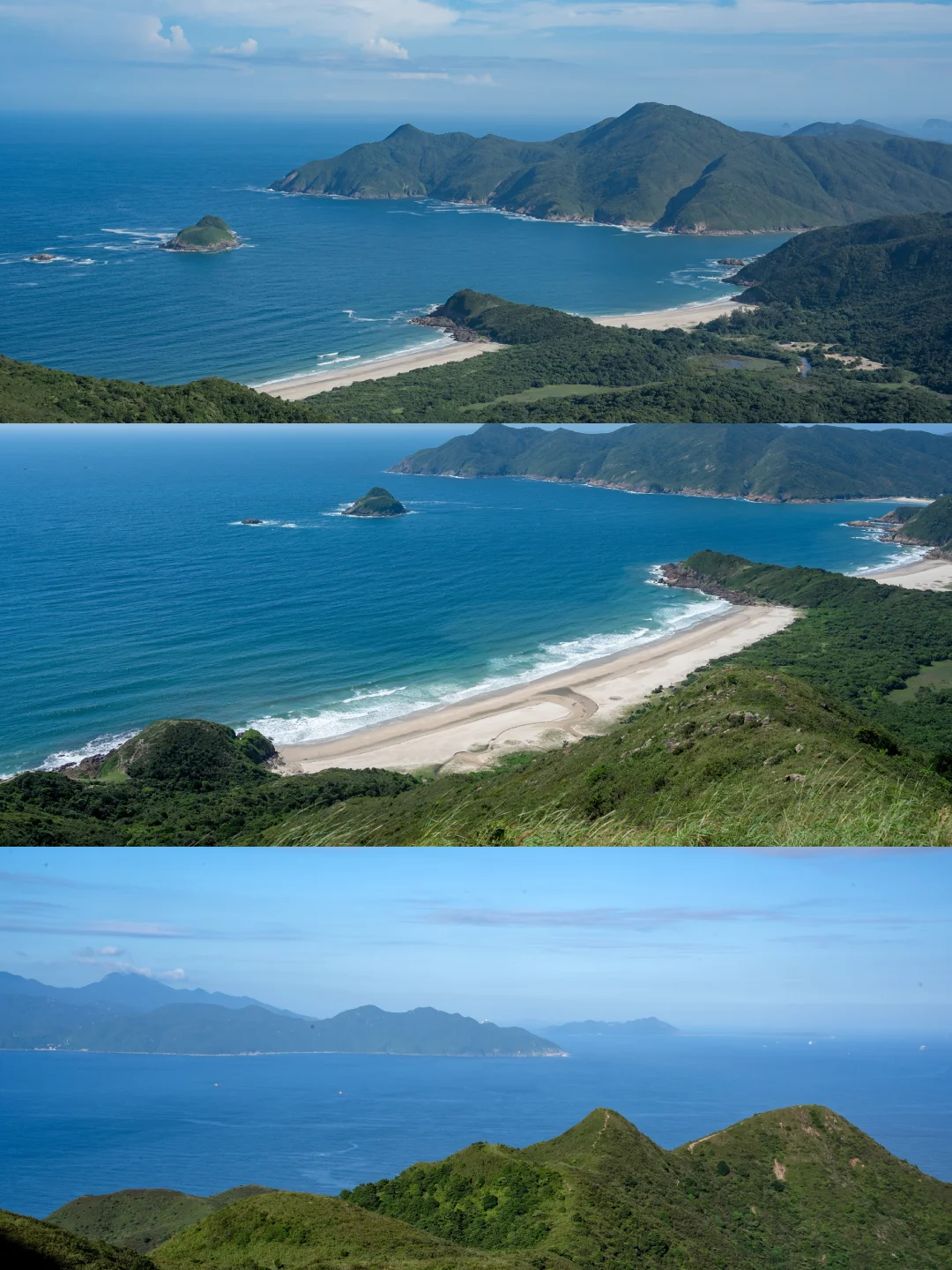 ❸这里的海景主要是大湾、咸田湾和深圳大鹏湾,山上俯瞰特别壮观,一点不输麦理浩径二段。