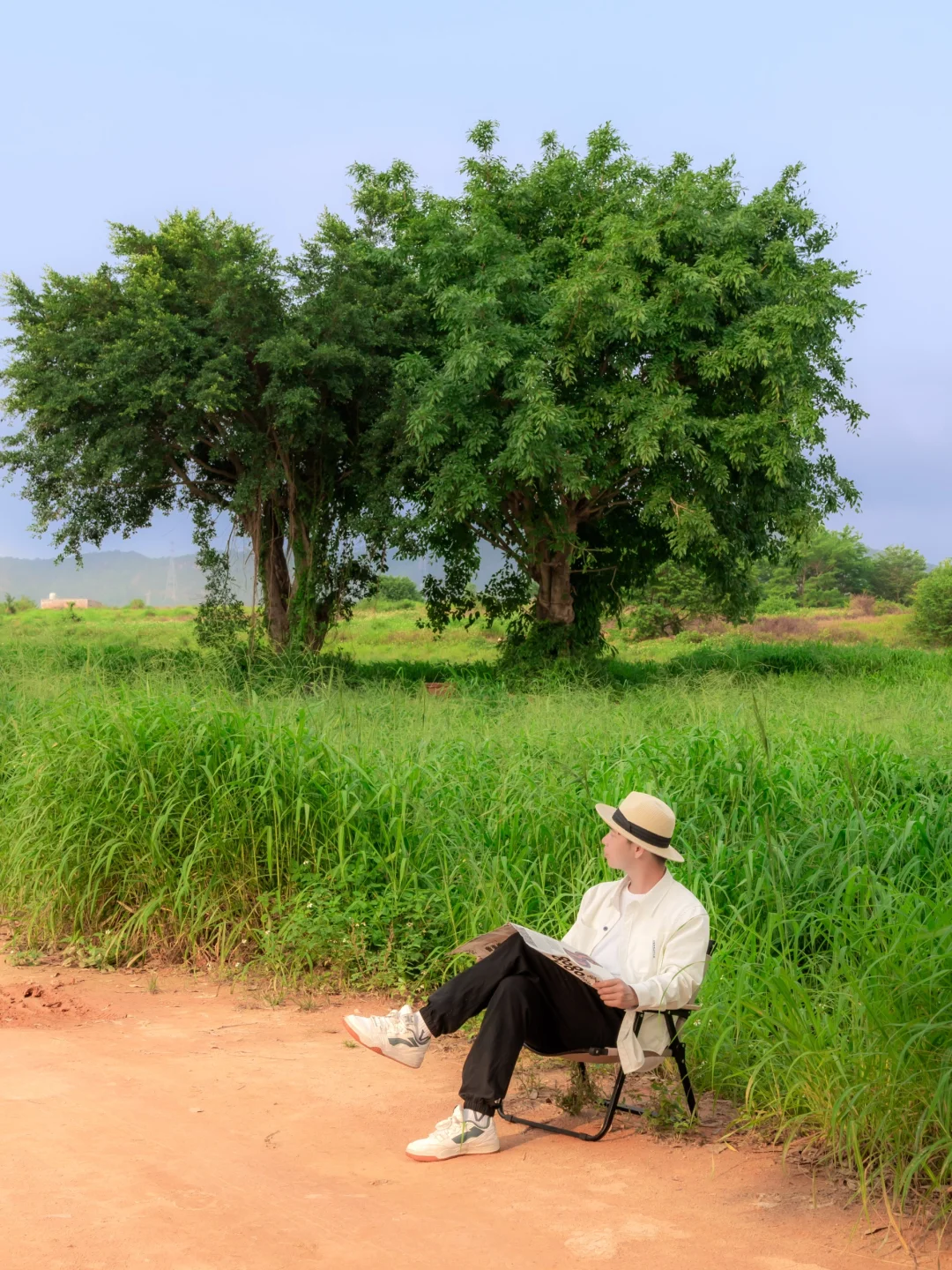 ❸拍摄人像的朋友可以带一些道具,比如帽子👒、露营椅子、报纸📰等,没有无人机的朋友可带梯子俯拍。