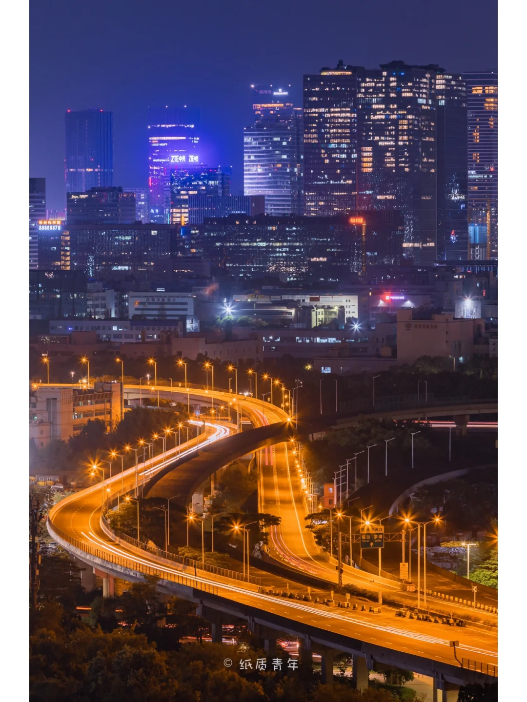 5️⃣回到玻璃栈道,🌆这里你可以看到深圳著名的南头立交,🏙背后就是汉京金融中心,也可以看到春笋大厦的隐藏的一角。不管是黄昏还是夜晚都能拍出不同氛围的照片,📸更建议用长焦端拍摄。