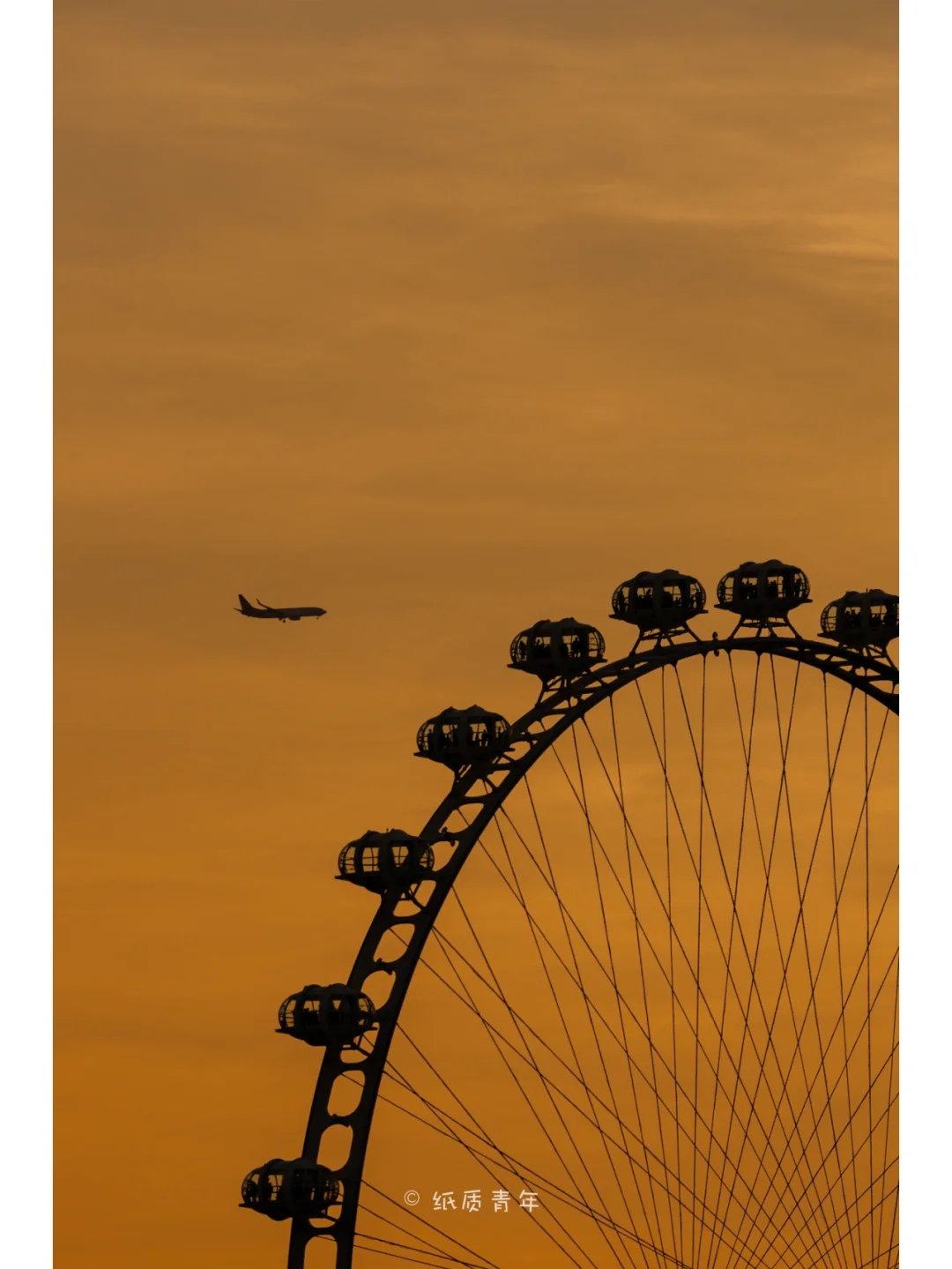 4⃣️长曝光建议带三脚架能固定相机📷(手机),我并没有带三脚架,靠着栏杆拍摄的。拍摄长曝光的时候快门时间控制在1秒左右,因为摩天轮是运动的,过长的曝光时间会拍糊,除非自身想要拍出这种效果。飞机经过的时候开启高速连拍📸就行了,总能抓住一张好的照片。