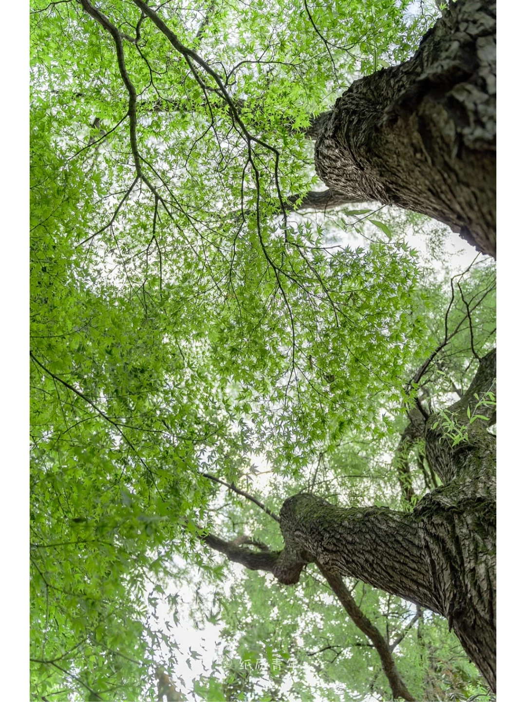 4⃣️10月初的枫叶还是绿色,这也是今年的最后一抹绿了,在阳光的映射下,仰拍往往能看到光的层次感,拍出不一样的颜色。