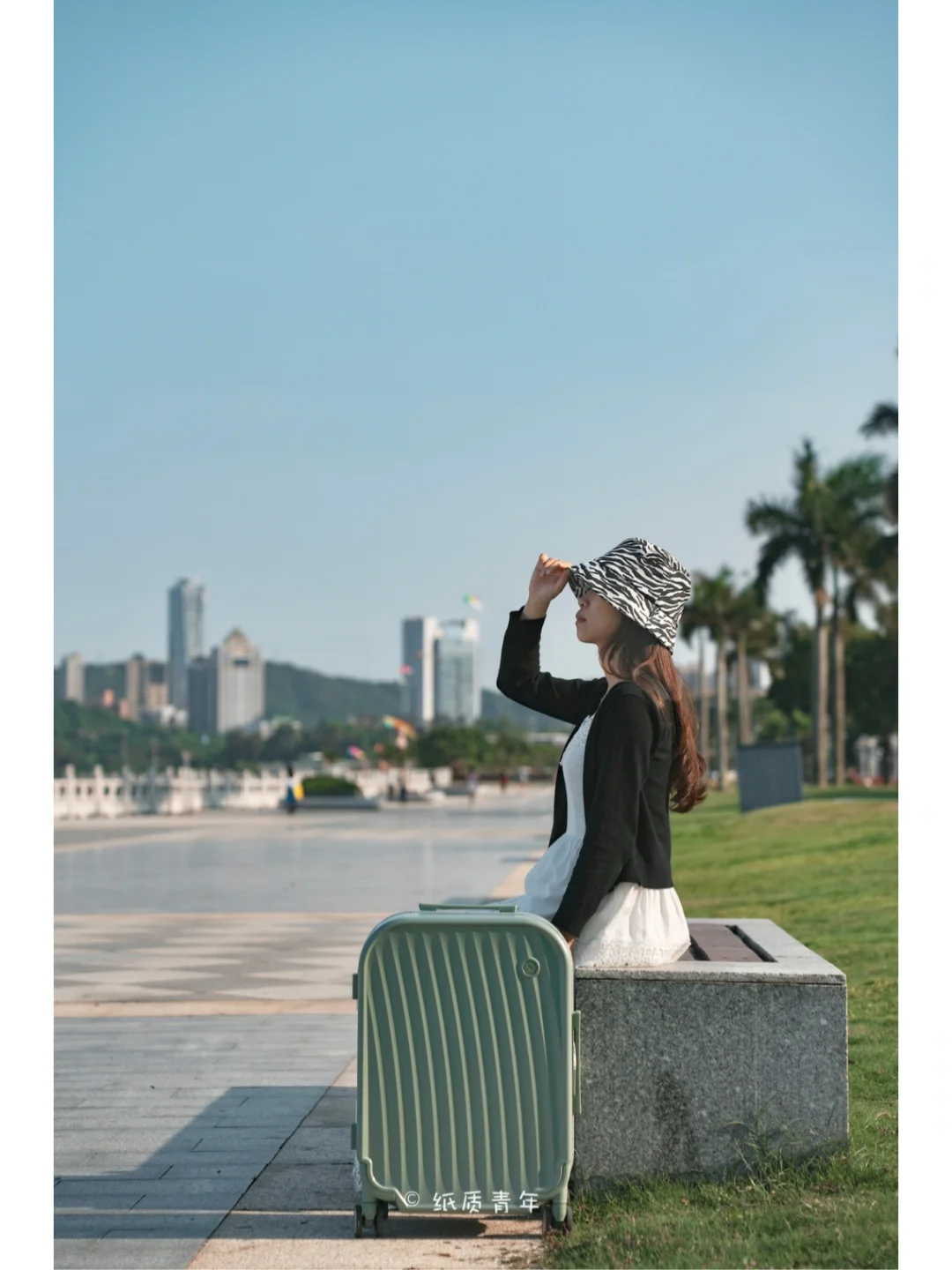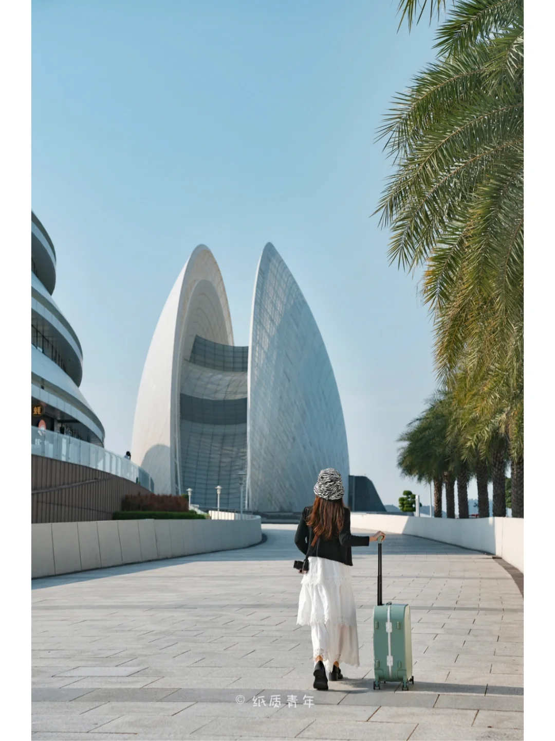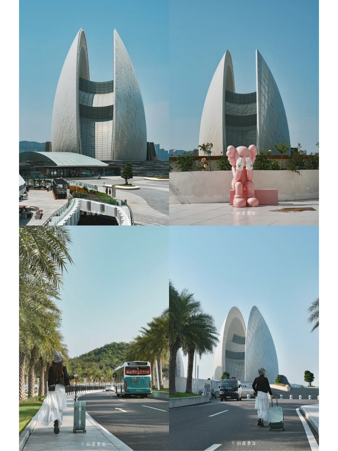 2️⃣可以在香洲客运站打车过去,几分钟的路程。拉着行李箱通往日月贝,电影感满满,是重要的拍摄道具。