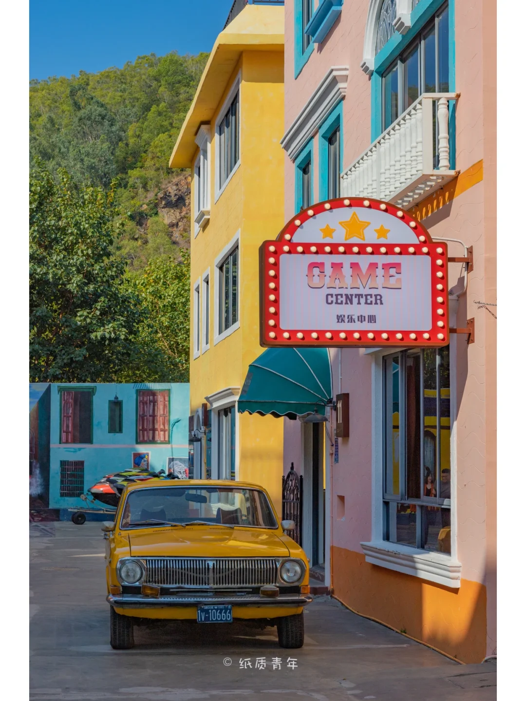 4️⃣次日上午可以在趣墅HAJANA拍一下欧式风格的照片,这里的民宿颜色都比较有特色,非常出片。
