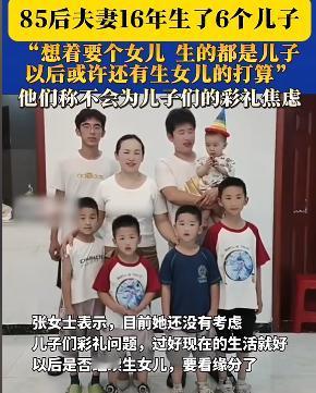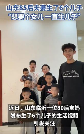 “这就是命啊!”近日,山东临沂一对85后夫妻,结婚12年生了6个孩子,竟然全都是儿子!夫妻俩本想着要个女儿,谁知却就是生不出来,网友:旱的旱死涝的涝死啊。 傍晚六点的临沂城郊小院里,铁锅烧得滋滋作响,女主人李娟端着一大盆炒土豆丝刚上桌,六个虎头虎脑的男孩就闹着围了过来。 10岁的老大熟练地给最小的弟弟摆好小碗,8岁的老二伸手去够筷子,不小心碰掉了老三的勺子,院子里顿时充满了清脆的吵闹声和李娟的叮嘱声。 这是这个六子之家最寻常的晚餐时刻,也是李娟和丈夫王强结婚12年来,每天都在上演的生活图景。 2013年,26岁的李娟和同村的王强结婚,夫妻俩最大的心愿就是能有个贴心的女儿,李娟甚至提前织好了好几件粉色的小毛衣。 可命运却开了个持续12年的玩笑,2014年老大出生,是个男孩;2016年老二降生,还是男孩。 婆婆攥着红糖鸡蛋赶过来,逢人就说老王家香火旺,当天还在村口放了一串鞭炮。 随着老三、老四接连出生,亲戚们再见面时,玩笑里多了些担忧,你们这是要凑够一队足球队啊?以后娶媳妇可咋整? 李娟嘴上笑着应和,夜里却会对着衣柜里没机会穿的粉色毛衣发呆。 2020年老五出生那天,在工地打工的王强在产房外蹲了两个小时,抽完了一包烟,一句话也没说。 最意外的是老六,2023年李娟上完环后,竟发现再次怀孕,医生检查后说,她的体质本身就容易受孕,避孕成功率比常人低。 李娟摸着肚子里的孩子,想起五个儿子围着自己要抱抱的样子,最终还是决定生下来。 如今老六刚满一岁,被哥哥们宠成了“小宝贝”,老大放学回家的第一件事就是抱弟弟转圈圈。 可养育六个孩子的艰辛,远超夫妻俩最初的想象,王强原本在工地做木工,为了多挣钱,他改成了跑夜间运输,常常凌晨两三点才拖着疲惫的身体回家。 李娟则把家里的小偏房改成了小卖部,一边看店一边给孩子们做饭、缝补衣服。 经济压力像座小山压在两人肩上:老大的学费、老二老三的奶粉钱,每个月固定支出就有五千多。 住房更是紧张,100平米的房子隔出了三个房间,六个男孩挤在两张上下铺,晚上翻身都得小心翼翼,吃饭时必须分两桌才坐得下。 但日子里也藏着意想不到的温情,王强跑运输晚归时,总能在门口看到老大留的灯;李娟看店忙不过来,老二会主动帮着看顾弟弟们。 这个特殊的家庭,随着李娟偶尔发布的日常短视频,渐渐被网友熟知。 评论区里分成了两派:有人羡慕“儿孙满堂多热闹”,有人替他们发愁“六套房六份彩礼,这压力不敢想”。 李娟看到后总会回复,日子是过出来的,不是愁出来的,先把眼前的孩子带好最重要。 外界对“六子家庭”的过度焦虑,其实是把物质标准当成了幸福的唯一答案。 这个家庭确实面临着养育压力,王强手上的老茧、李娟眼角的细纹,都是生活艰辛的印记。 但他们从未把孩子当成“负担”,王强会记得每个儿子的生日,李娟能准确说出每个孩子的喜好,六个兄弟在吵闹中培养出的手足之情,更是无法用金钱衡量的财富。 而对李娟和王强来说,六个儿子的吵闹声、饭桌上冒着的热气、兄弟间的相互扶持,就是他们最踏实的幸福。 生活从不会因为孩子的性别或数量就变得完美,但只要用心经营,在烟火气中守着亲情,就不算辜负岁月。