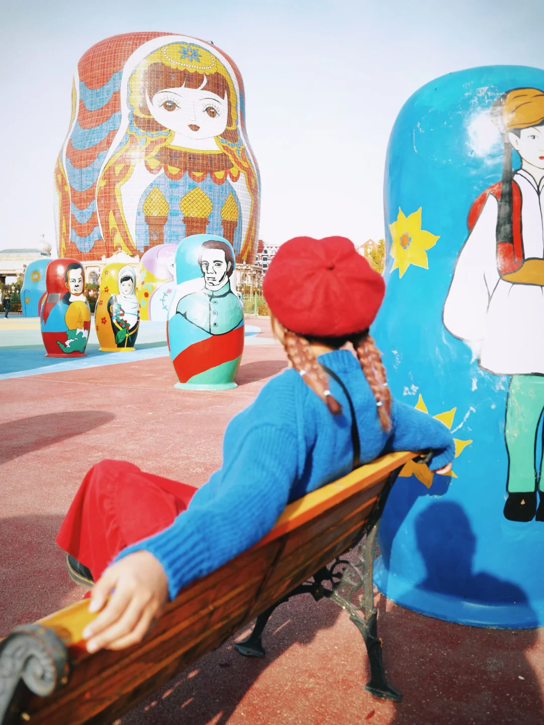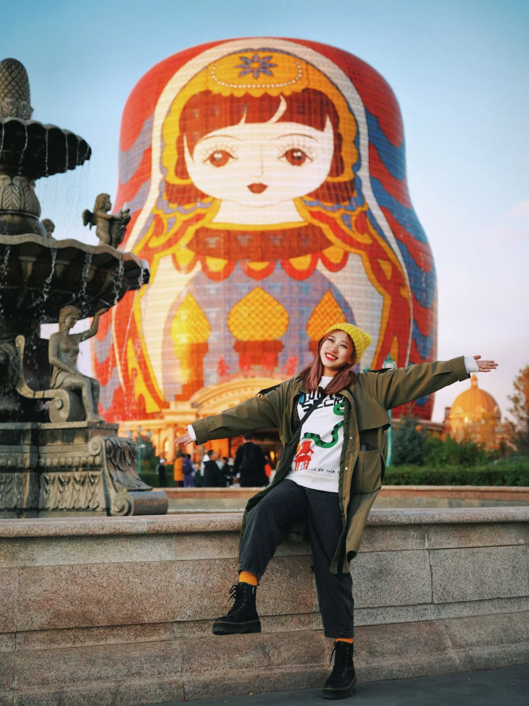 📍套娃广场:30米高的五彩套娃在这里❗️旁边是不同风格的可爱建筑⛲套娃游乐园的票是送的,如果单买可以考虑不进去