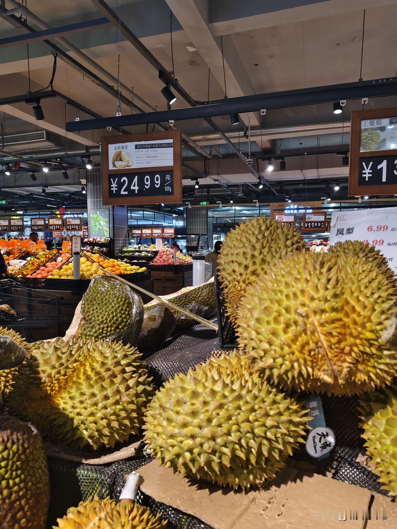 这红超市家榴莲还这么贵,25一斤了,前一点时间京东折扣把价格打下来了18.9。 估计没啥人买了,太贵了。榴莲