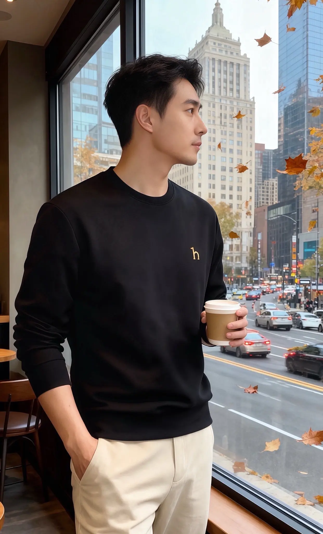《雪窗下的暗纹暖意》 落雪裹住街景那天,我在咖啡馆吧台撞见他——黑色...