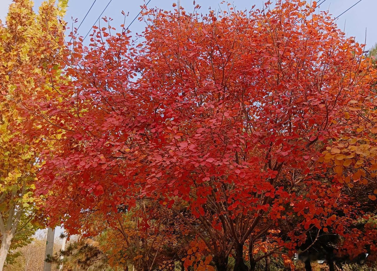 深秋街头的银杏叶,金色灿烂的叶子,怎么看都看不够! 红叶树的叶子,红的热烈,烈火