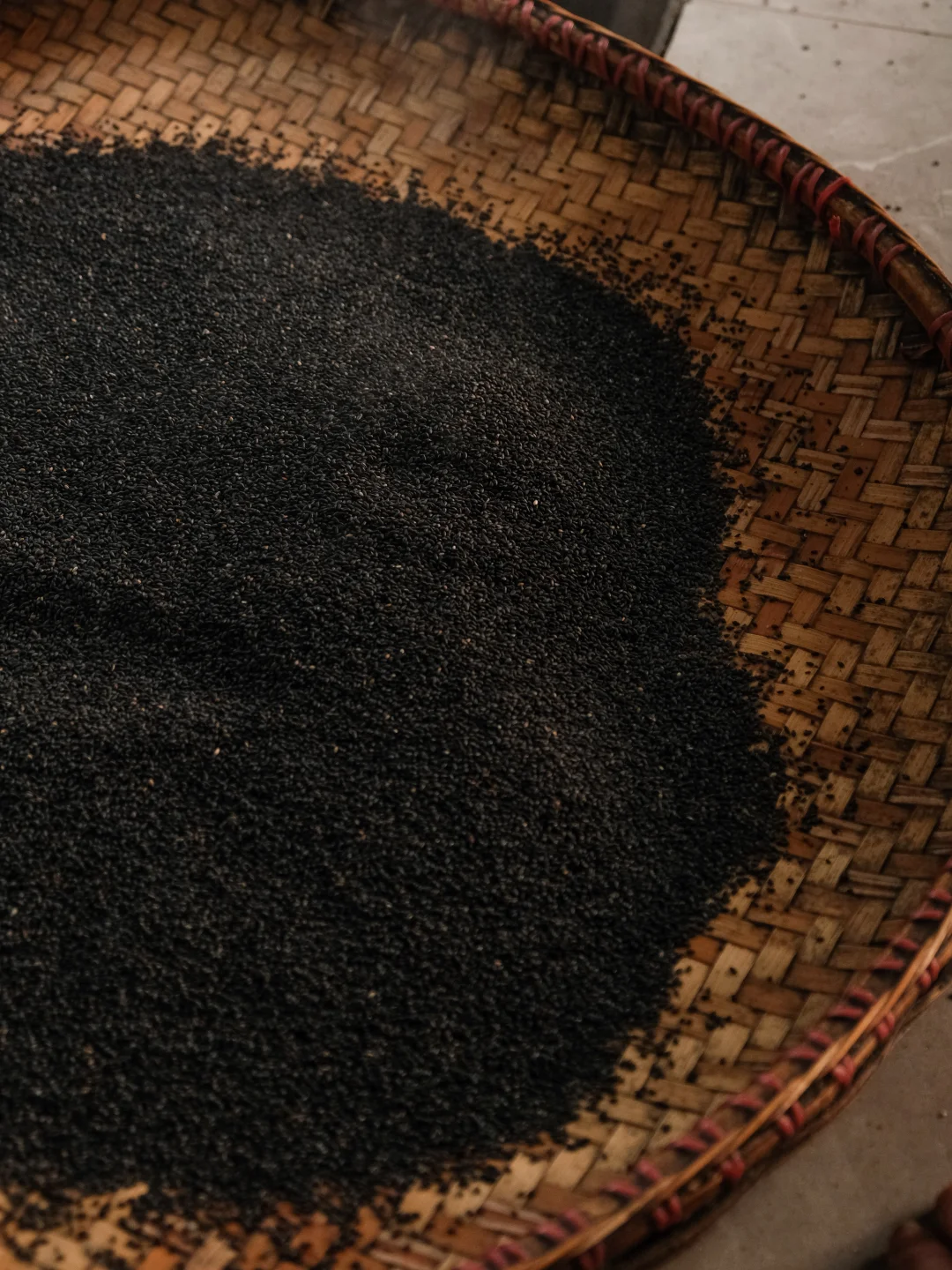 麦芽糖、黑芝麻、黄豆细细磨成粉