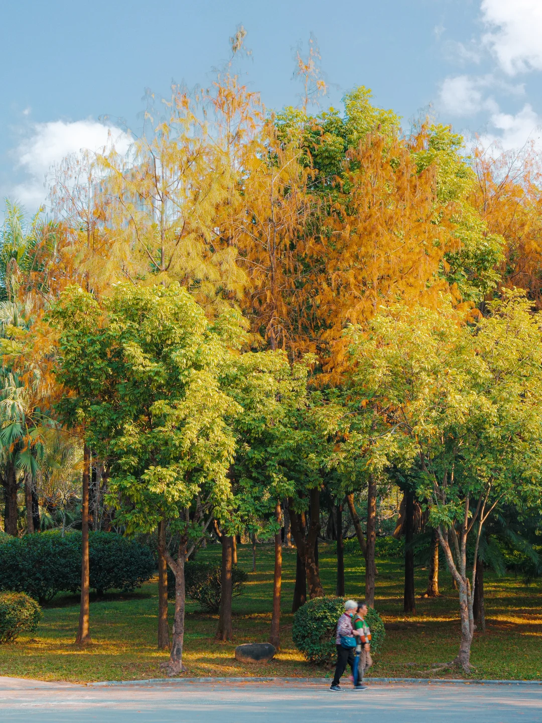 落羽杉主要集中在D2区红荔路旁和E区景观湖附近~中心公园很大,可以慢慢散步散步、或是坐在草坪上野餐🧺