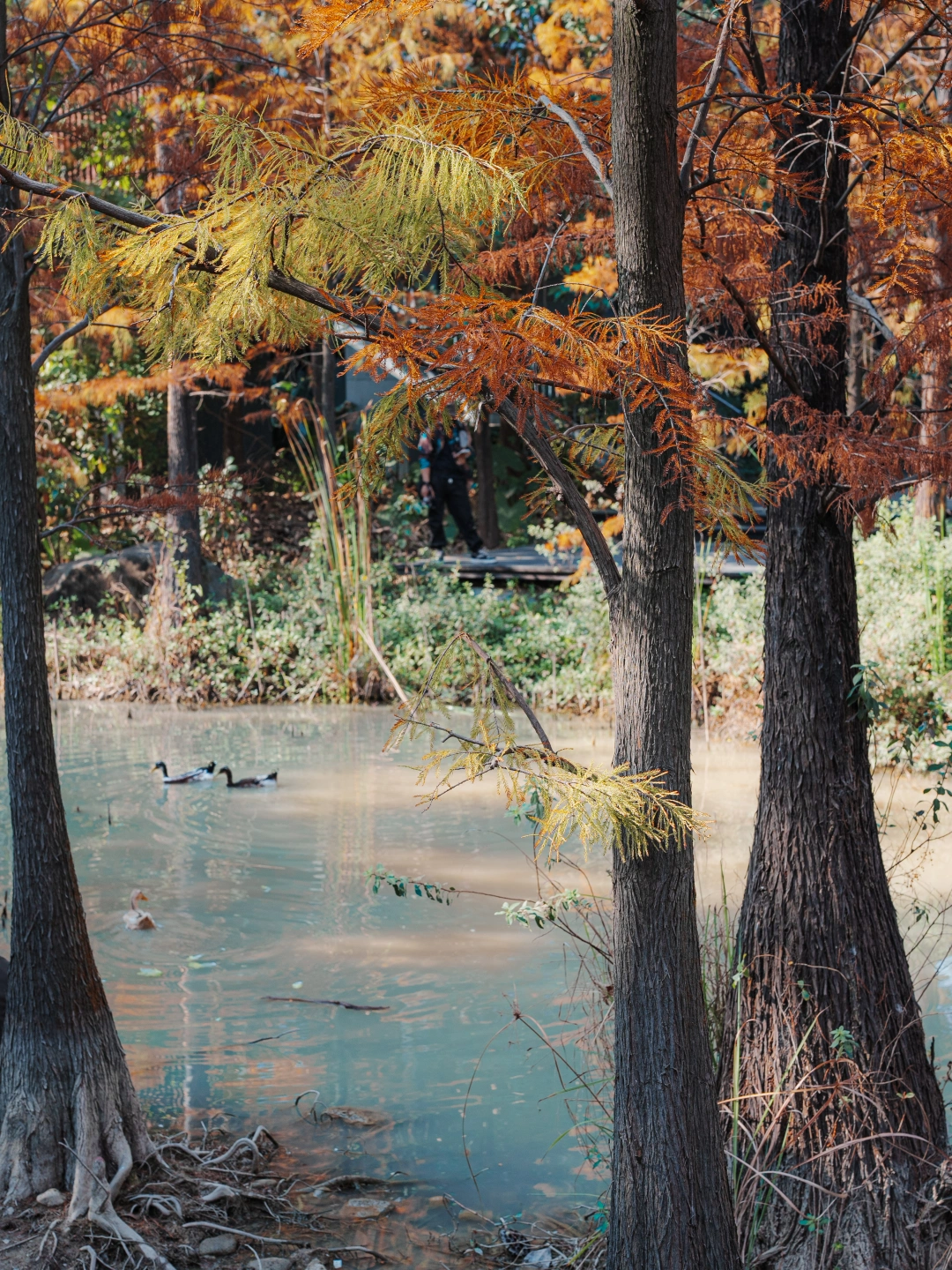 公园里散落着不少落羽杉,尤其是莲花湖和漾日湖旁,周末花半天时间在公园散散步无比chill