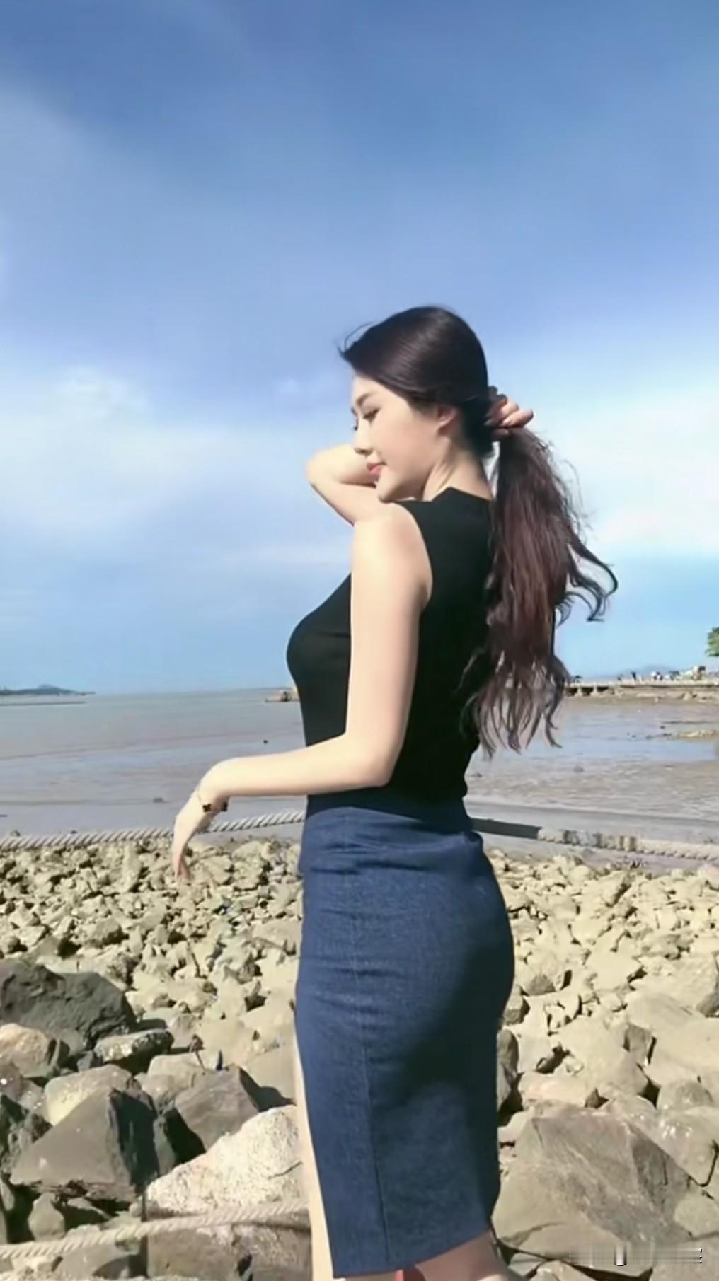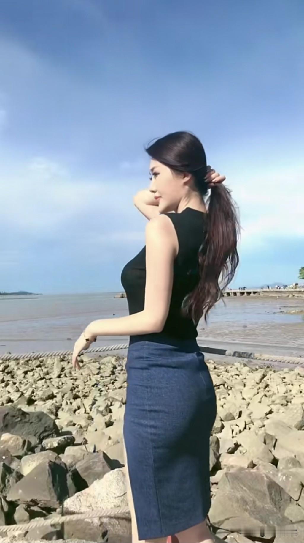黑裙女神,优雅坐阶,气质满分!👗👠