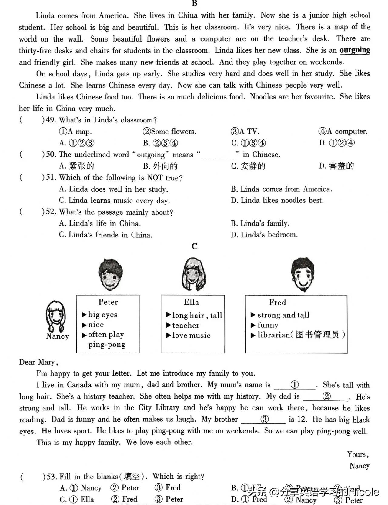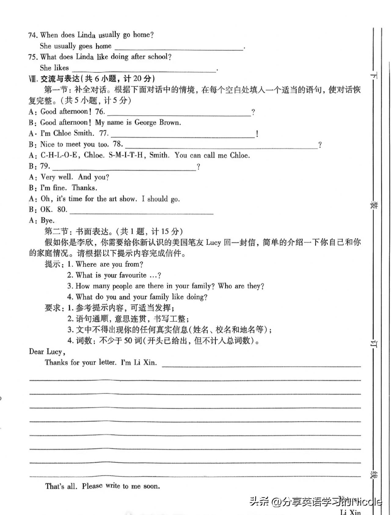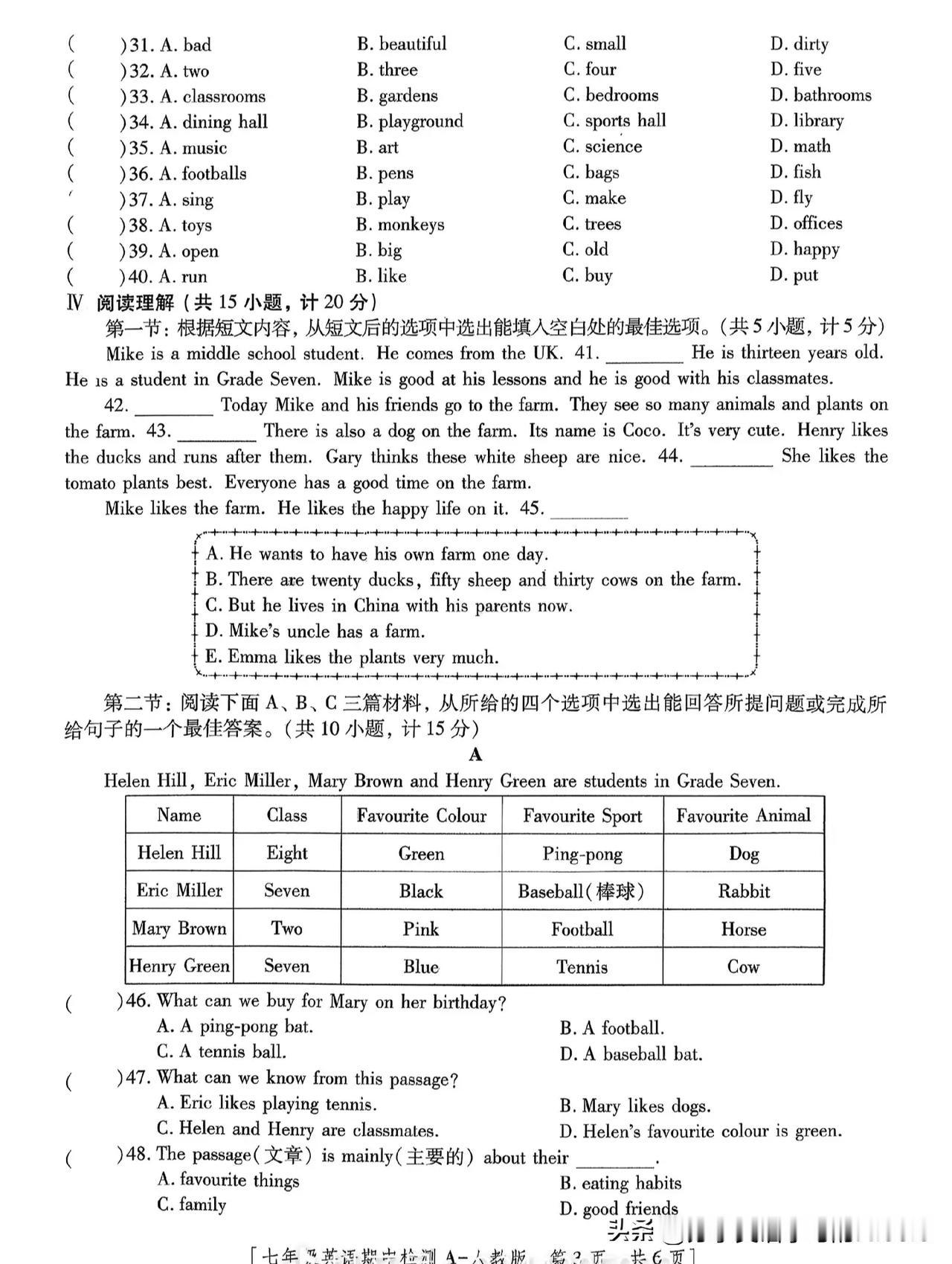 25 - 26学年度人教版英语七年级上册期中测试A卷,可是检验半学期英语学习成果的重要标尺。从题型来看,有听力部分,像听句子选图片、选答语,这很考验对英语的反应能力。比如听句子选答语中,可能会问“How are you”,就得迅速选“I’m fine, thanks”。 还有单项选择,涉及语法和词汇运用,像考人称代词、主谓一致等。例如“Butterflies are insects. _____ look very beautiful”,就得选“They”。通过这份试卷,能清楚知道自己哪块知识掌握得好,哪块还得加把劲。