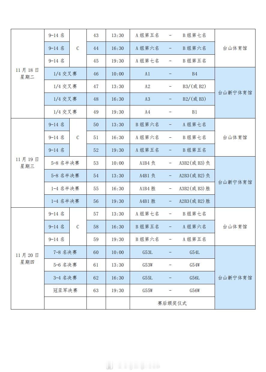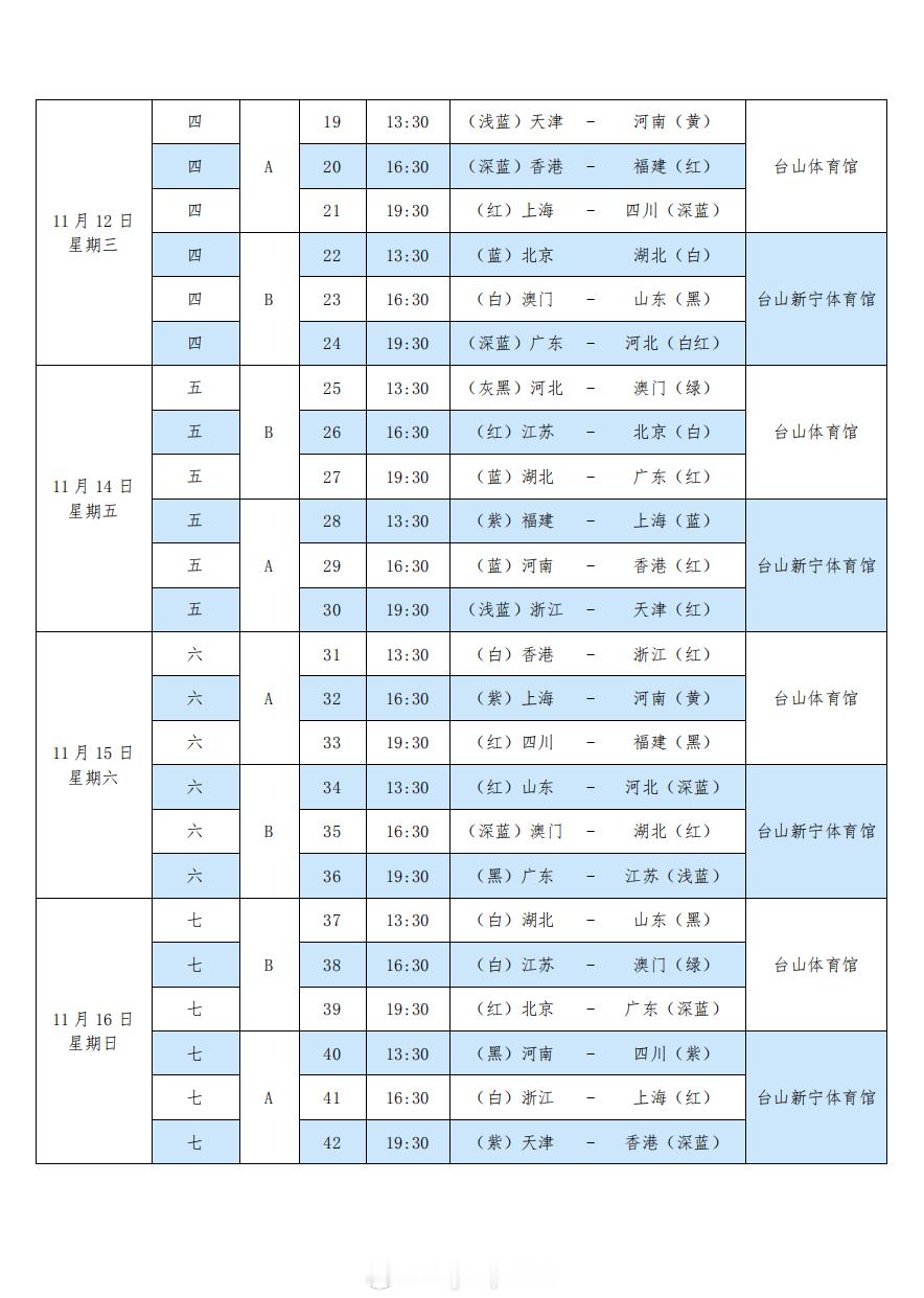 第十五届全运会男排成年组完全赛程