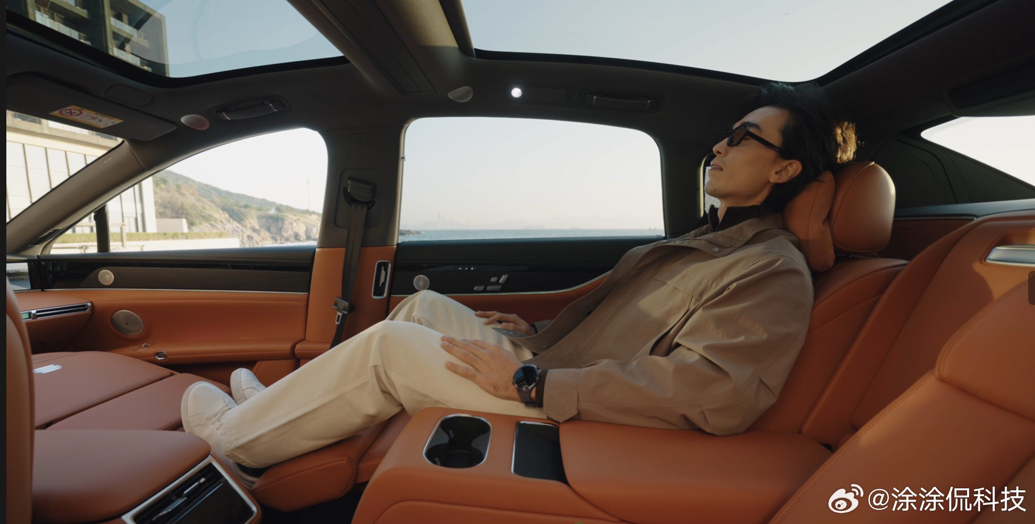 车里还有好多屏幕,后排那个小平板能吸在椅子上,想调空调、切歌就自己滑,再也不用喊“师傅,麻烦……”了。哦对了!还有那个小冰箱,夏天随时能喝到冰镇气泡水,冬天能温着我的热奶茶,它怎么这么懂我!