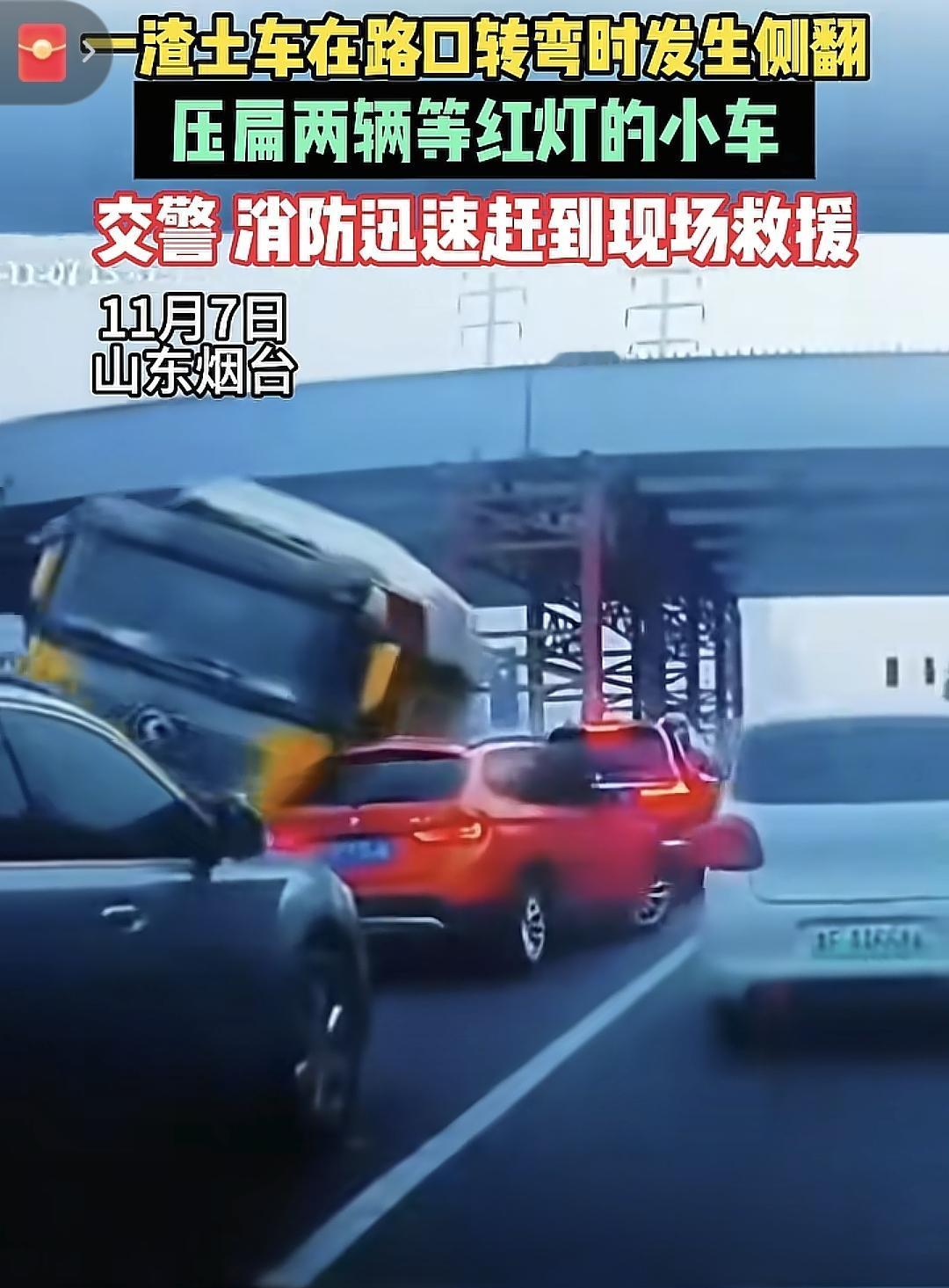 烟台渣土车司机是个可怜人,家里条件不好,为了多拉一车,他转弯开时开得太快了,不曾想车辆侧翻,把一边道上的两辆等灯的小汽车压了,有人说“他就是没了能早点回去再多一拉一车料,多拉一车可以多好几百呢”,他也是为了多挣点钱,可没想到出了事儿,这下后悔都来不及了 红色宝马车的那个女司机知情人说是个女教师,还有个小宝宝不大,现在一家人天都塌了,孩子还那么小就没了妈妈,也有晒了行车记录仪视频的司机说“这个人就是太守法了,明明看到她有躲避动作,车动了,可她还在担心撞别人的车”,可惜了。 对小车司机和家人来说,这简直就是无妄之灾啊,等个红灯意想不到的灾难从天而降,后面停的都是车,想逃都逃不过啊,这些渣土车白天怎么能进市区内呢?有没有超载,这些一定要查清!
