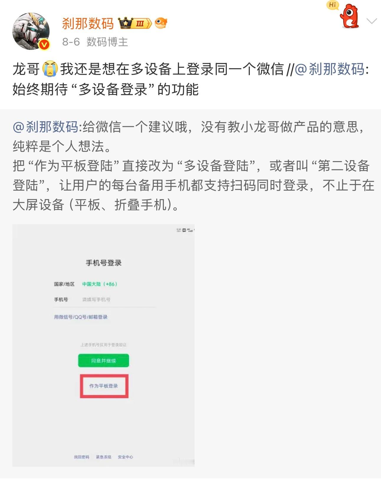 曝微信正探索多台手机登录同一账号 阿龙,你来真的[泪]我爱你