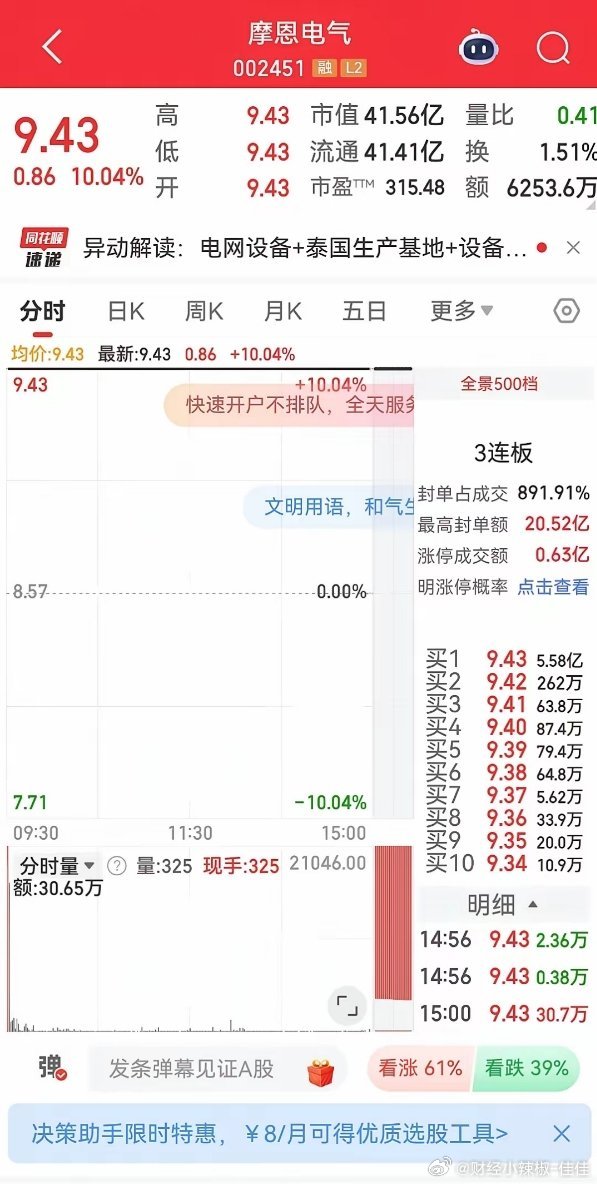 紧盯摩恩电气的走势,电力板块能否继续就看它的表现。