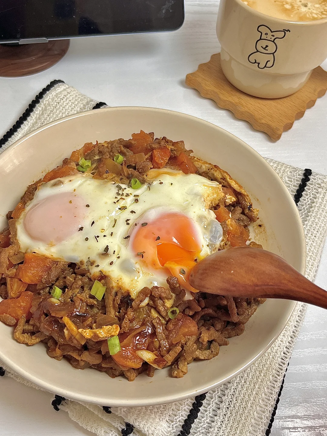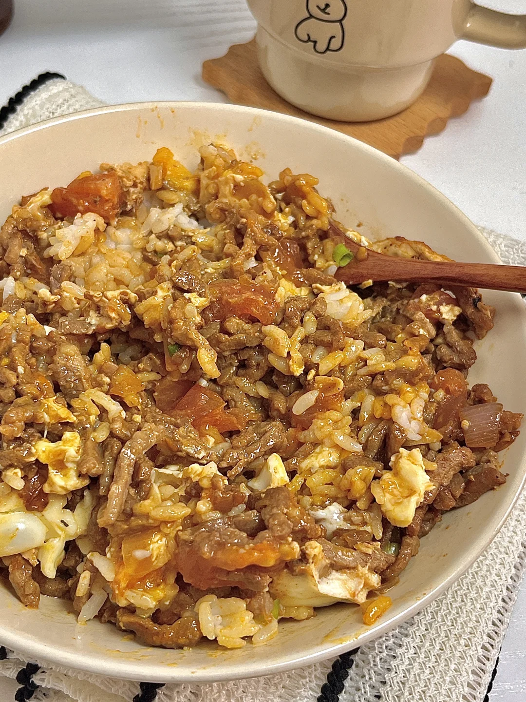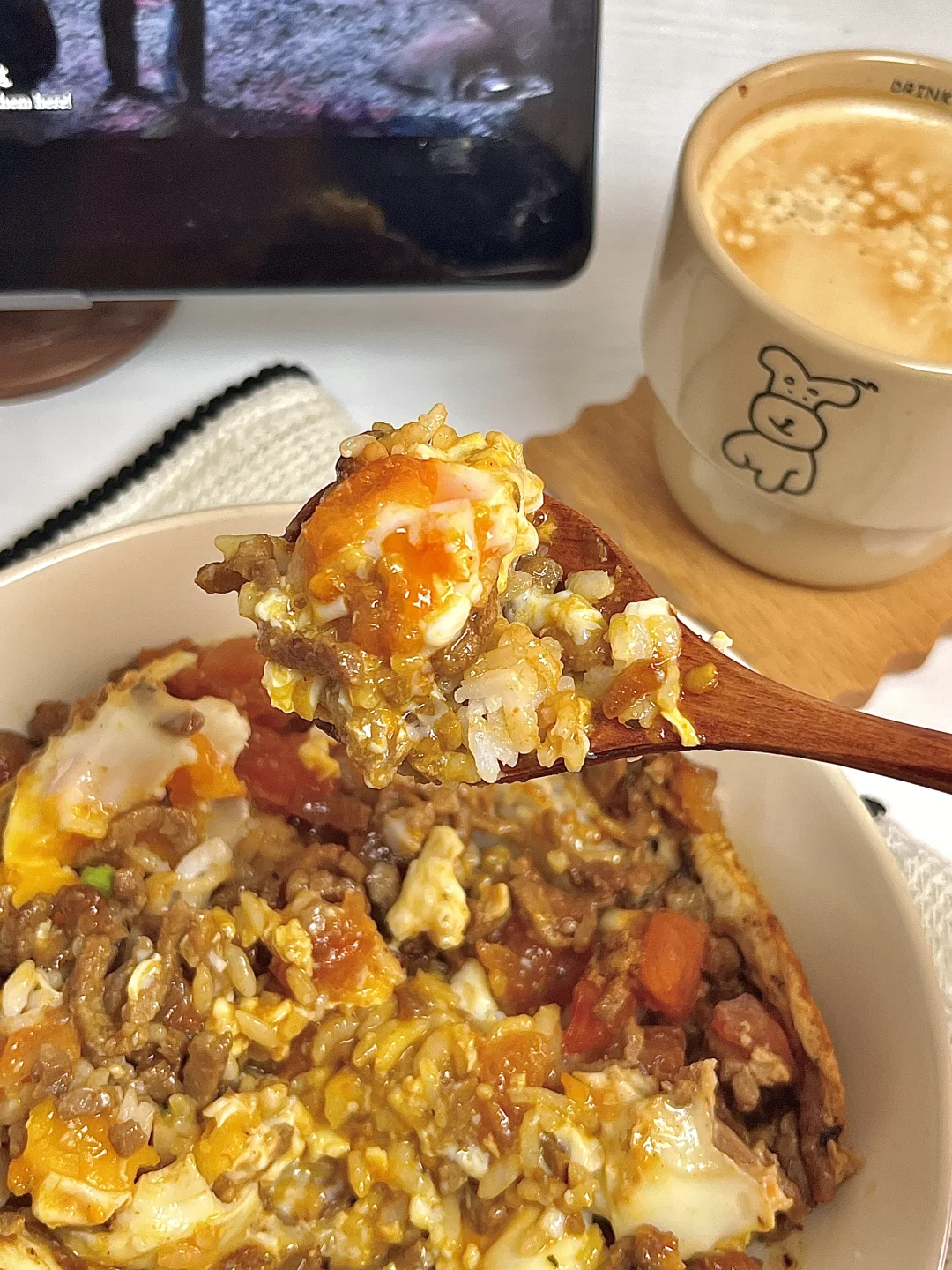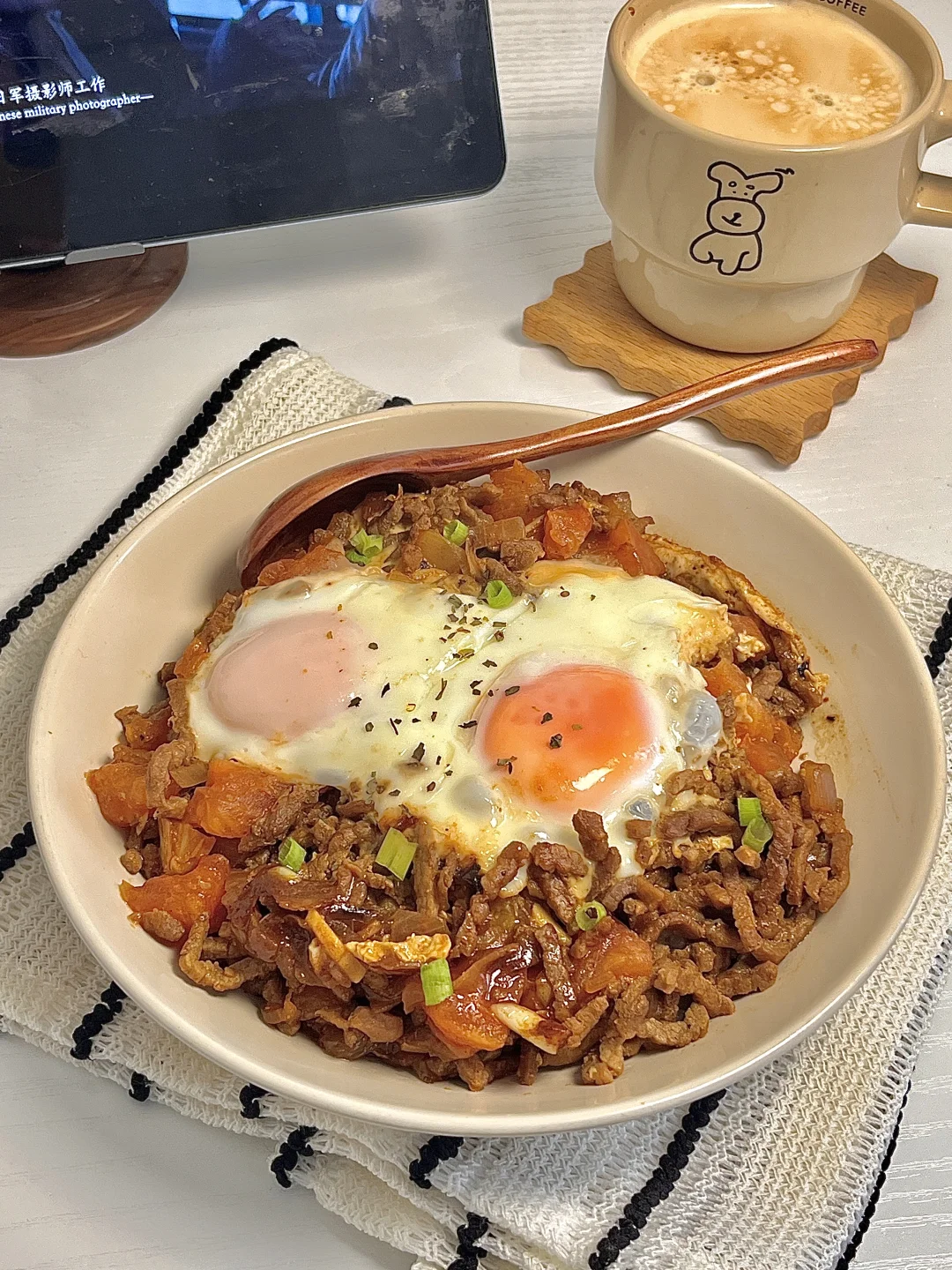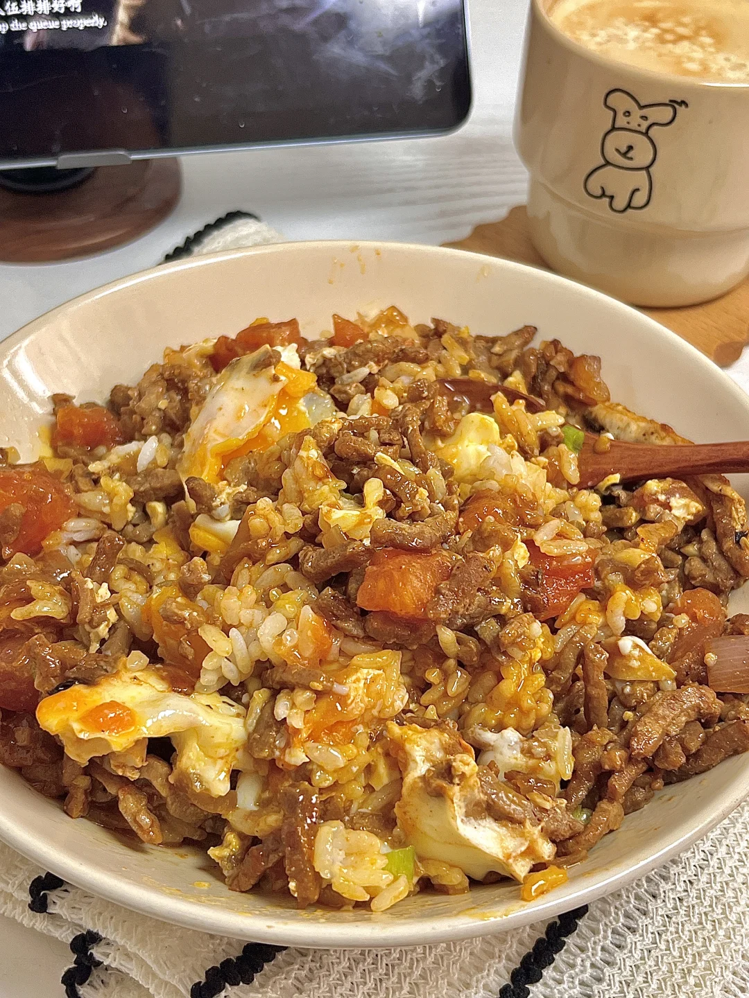 🍴今日份一人食: 番茄牛肉鸡蛋饭 美式 . 今天吃番茄牛肉鸡蛋盖饭🍛 牛肉加上番茄🍅的酸甜味道就很清爽,配上溏心蛋好下饭😋🍚拌着吃特香,爱吃的宝子快去试试呀[派对R]