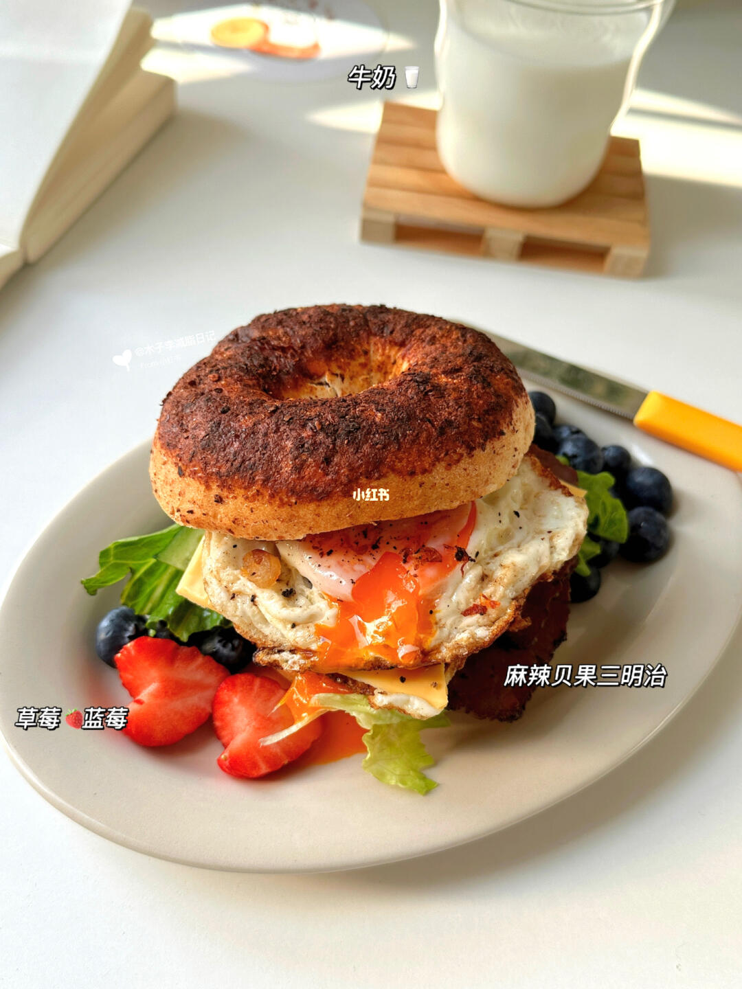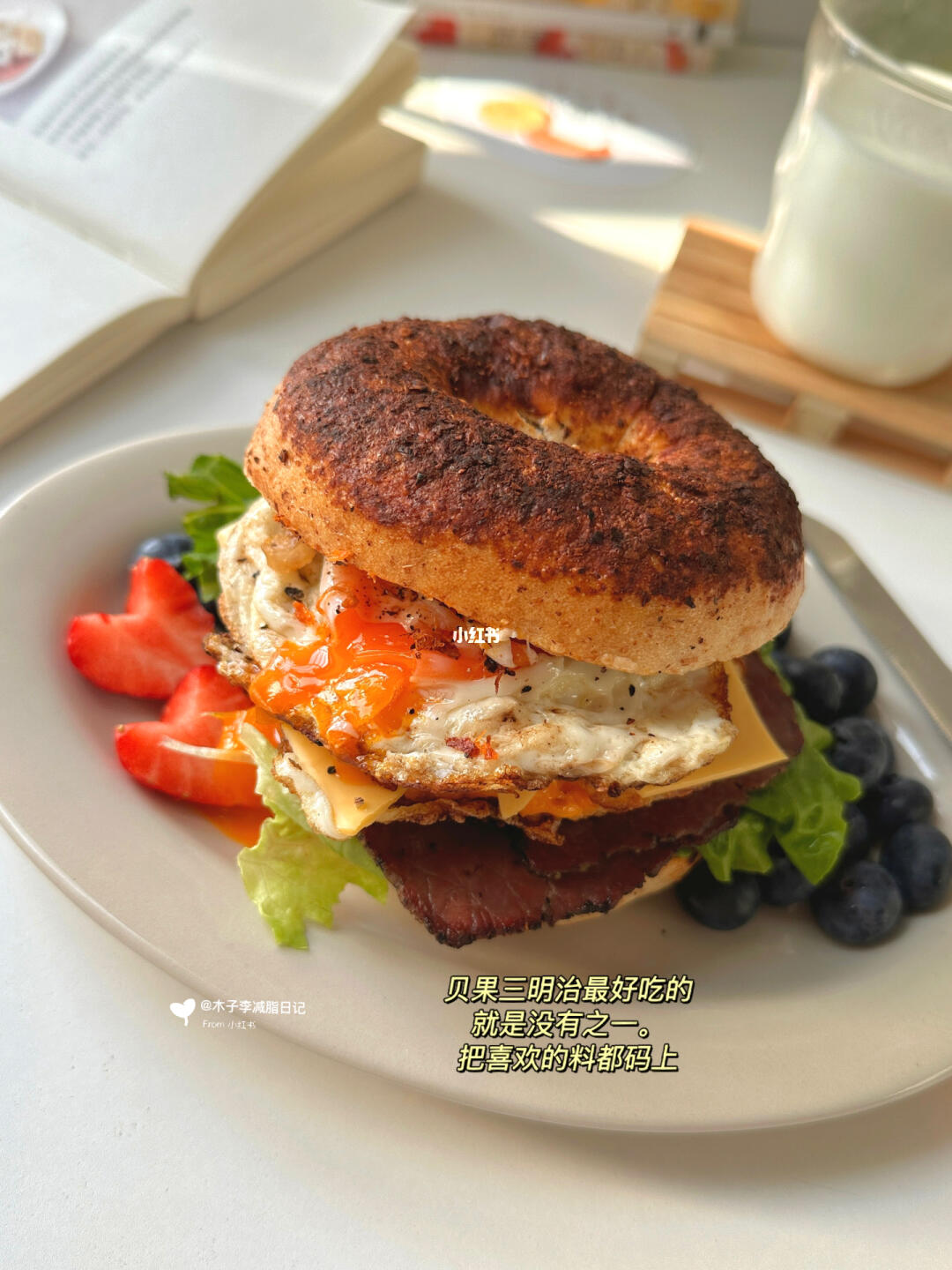 ▪️初始体重:120斤 ▪️已减27斤 - 🌀早餐:麻辣贝果三明治 | 牛奶🥛 | 草莓🍓 | 蓝莓 🌀午餐:蔬菜鸡蛋沙拉 | 白开水 🌀晚餐:蒸红薯一个 饮水量💧2000ml➕ - ▪️最近天气真的怪、昨天还下雪了冷的像冬月一样、搞的我都感冒🤧了唉、 ▪️麻辣贝果真滴太好吃啦、一层层码上喜欢的料 美味又好顶饱呀、搞的中午都不咋饿 就做了个沙拉吃~低卡又健康哈! ▪️买的蜜薯放了好久下午蒸一个感觉味不对 还得烤着吃香😁 友友们要好好吃饭~健康减脂呀!
