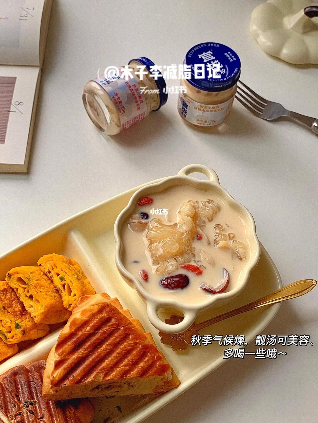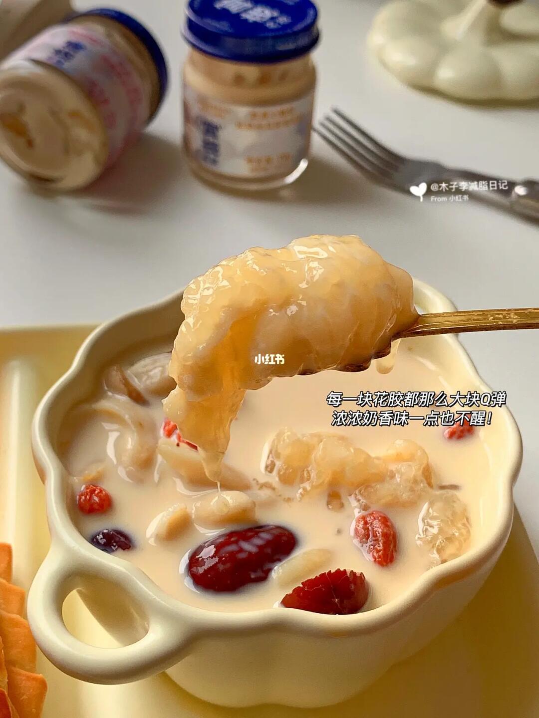 ▪️ 不到半小时就做出一碗胶原蛋白满满的养颜羹啦,奶香奶香的超好喝,官栈小嫩胶很大块,处理挺好,没有腥味,吃着qq弹弹的,胶质多到粘嘴巴!满满的胶原蛋白,太满足了!这碗百合红枣花胶羹女孩子一定要多喝,养生又低卡。