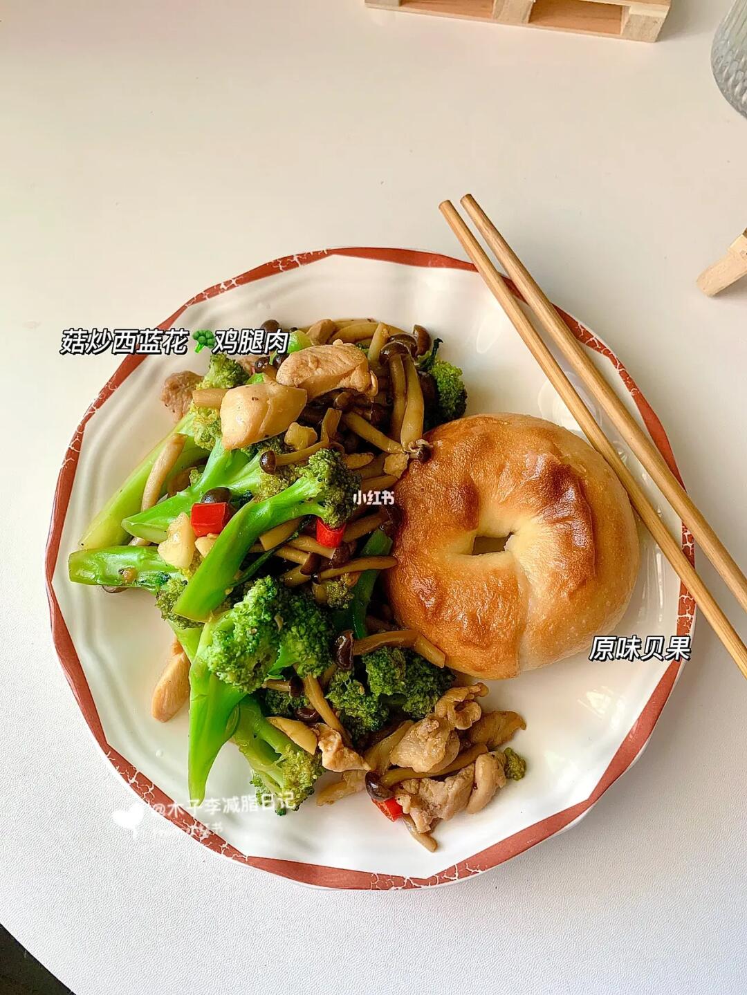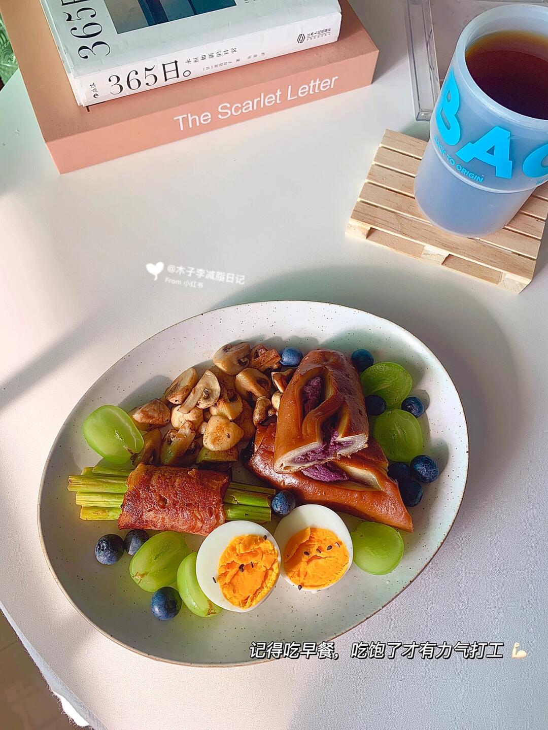 2022.8.16 🔸初始体重120斤 🔹现重89斤 ——————————————————————— ☀️早餐:蓝莓乳酪碱水|鸡蛋|培根卷芦笋|口蘑|蓝莓|青提|黑咖啡 🥣午餐:菇炒西蓝花鸡腿肉|贝果 💧喝水2000ml➕ 🏃♀️运动:不动 ————————————————————— 早餐还是喜欢拼盘,把想吃的都放一盘! 午餐就爱吃炒菜! 我的饮食结构变成了一种习惯,反正早上要吃饱!嘻嘻嘻[萌萌哒R]