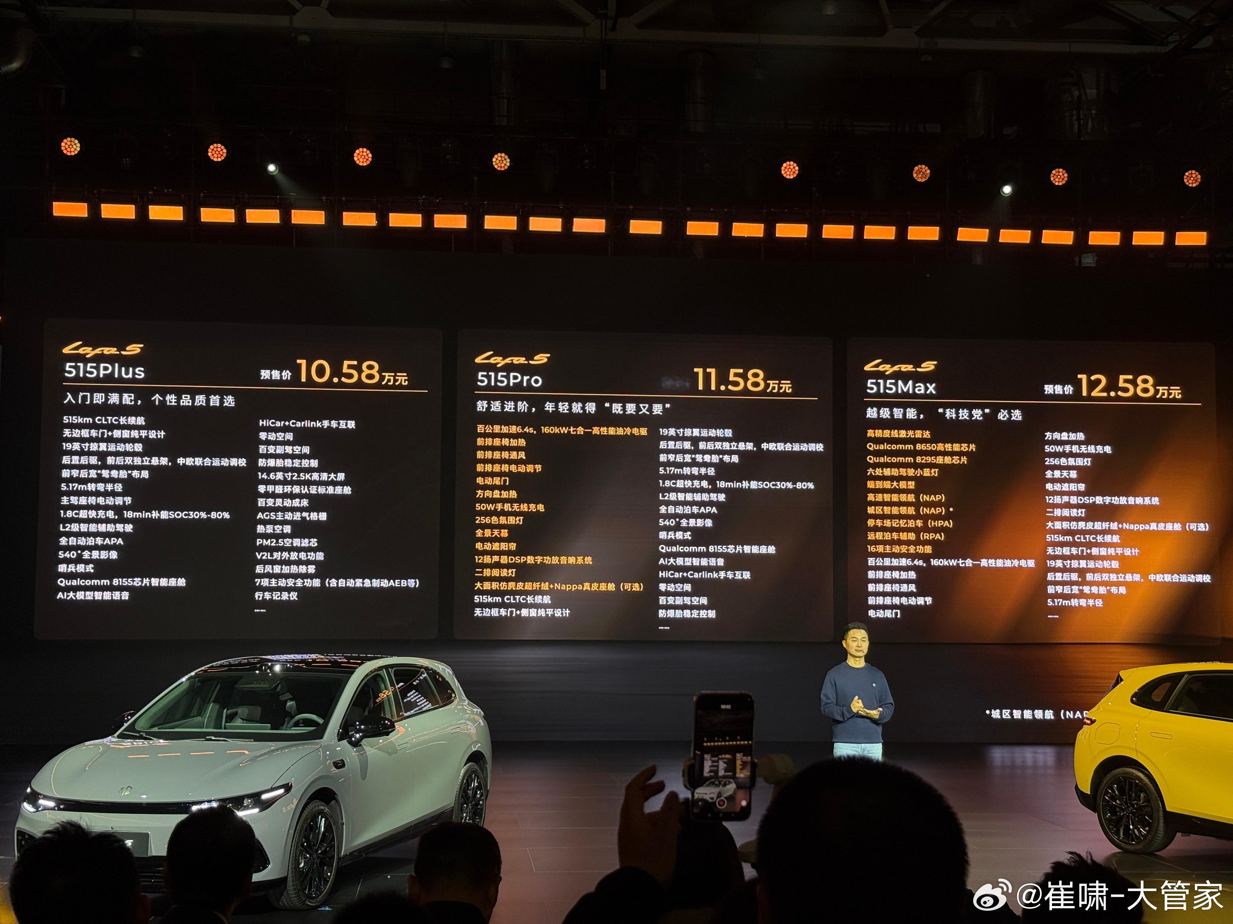 续航分515和605两种,按配置一共划分出5个车型。