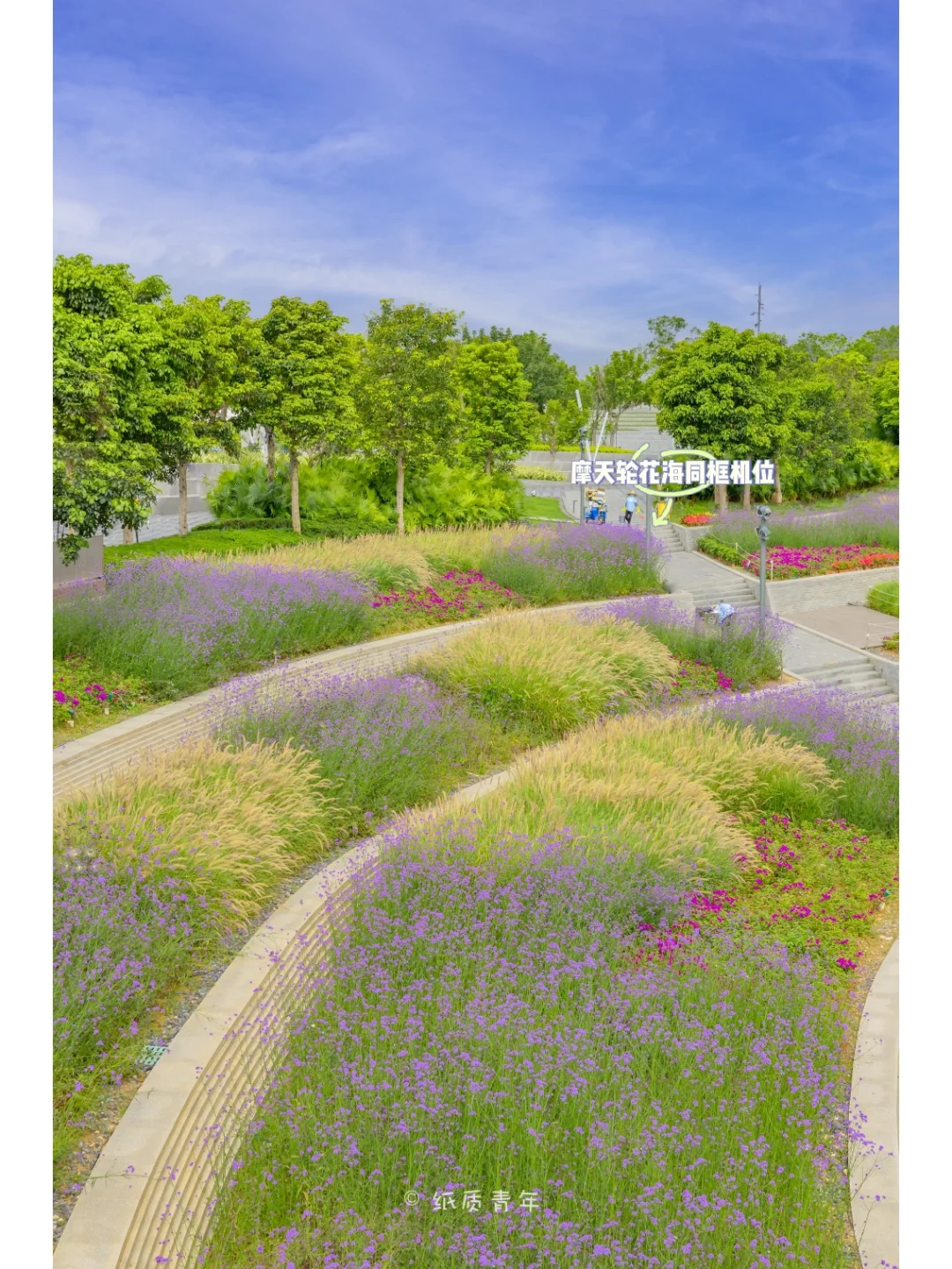2️⃣标志性的摩天轮和紫色花海同框的机位在最上面一个花圃位置,具体可以看P3有标记。
