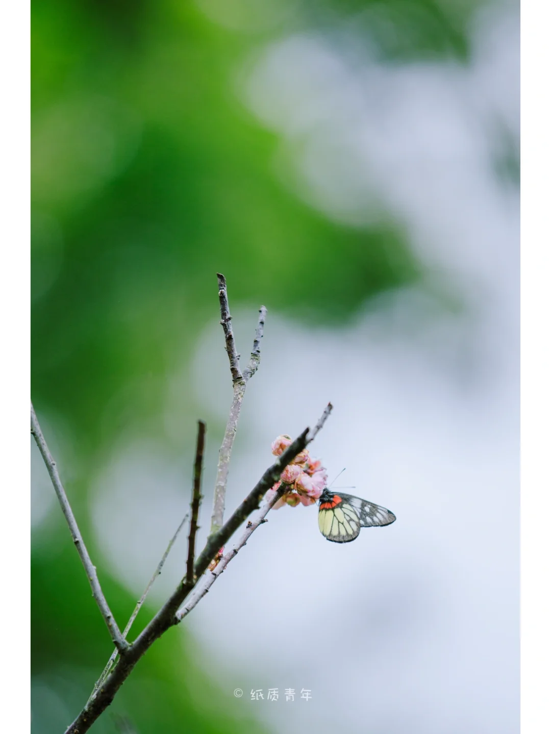 3⃣️由于下雨,仰拍天空会一片泛白,平拍又会显得杂乱,🌳所以需要找树林做背景拍摄,大光圈镜头能形成刀锐奶化的效果。