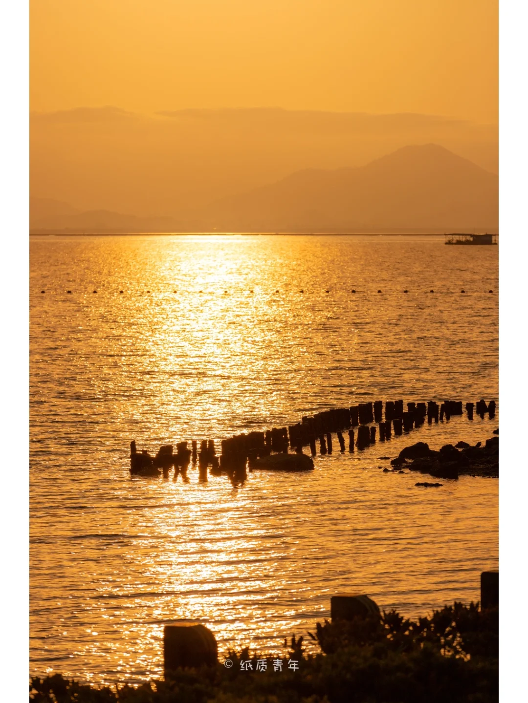 3️⃣沿着海边可以低机位拍摄,大光圈能拍出很好的光斑效果。