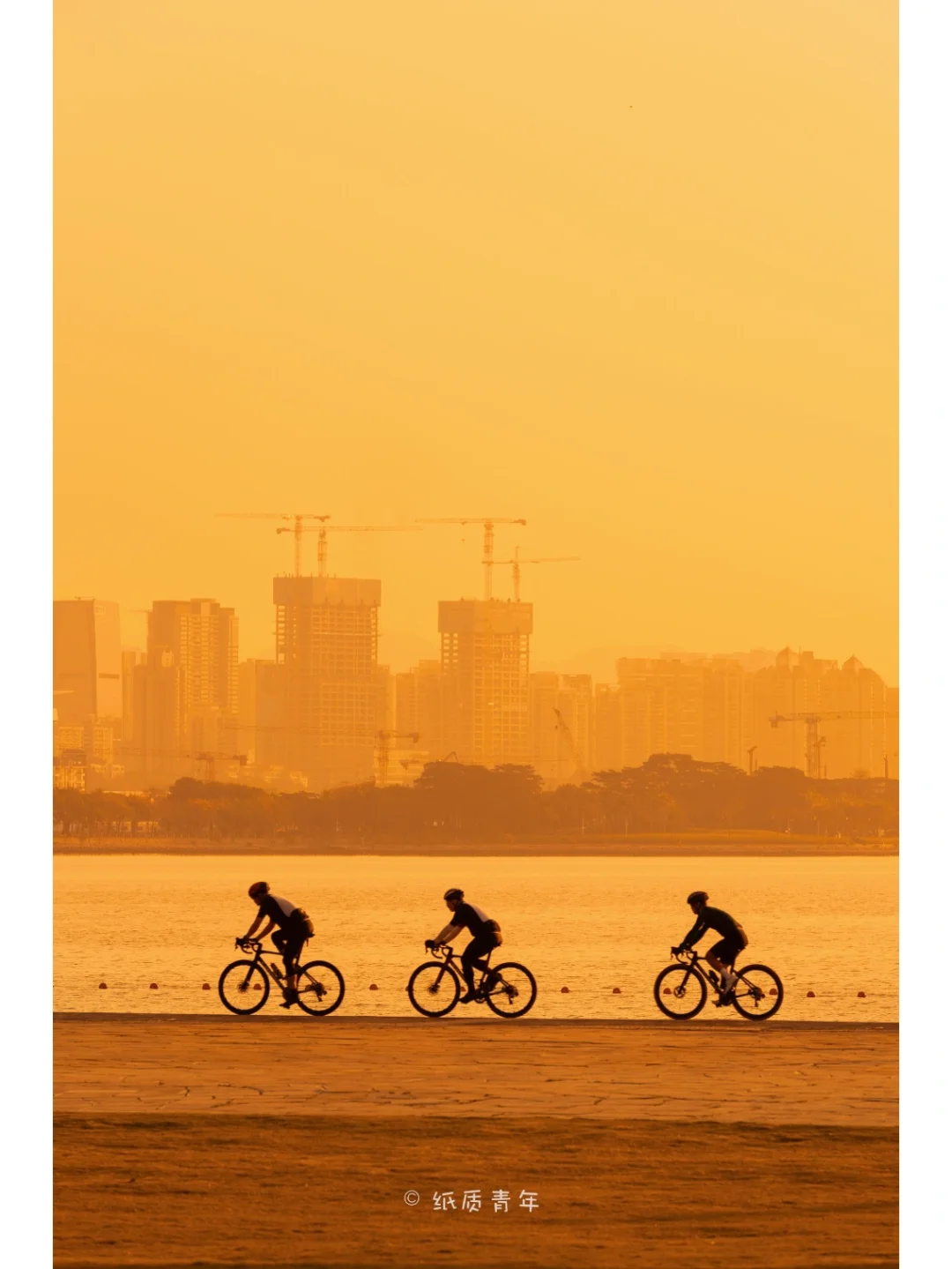 2️⃣早上健身骑行的人较多,在人来人往中能拍出不错的剪影效果。