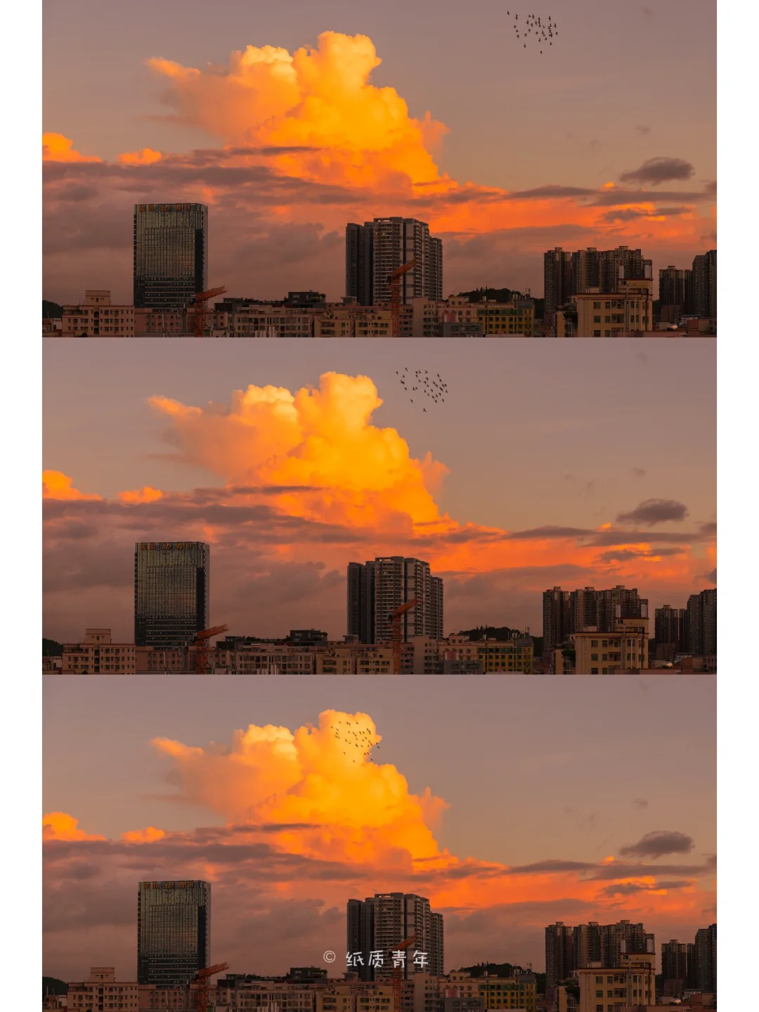 夏天的清晨最值得期待的就是朝霞,大片的云朵非常有层次,刚好一群鸟飞过,给天边的云彩锦上添花。