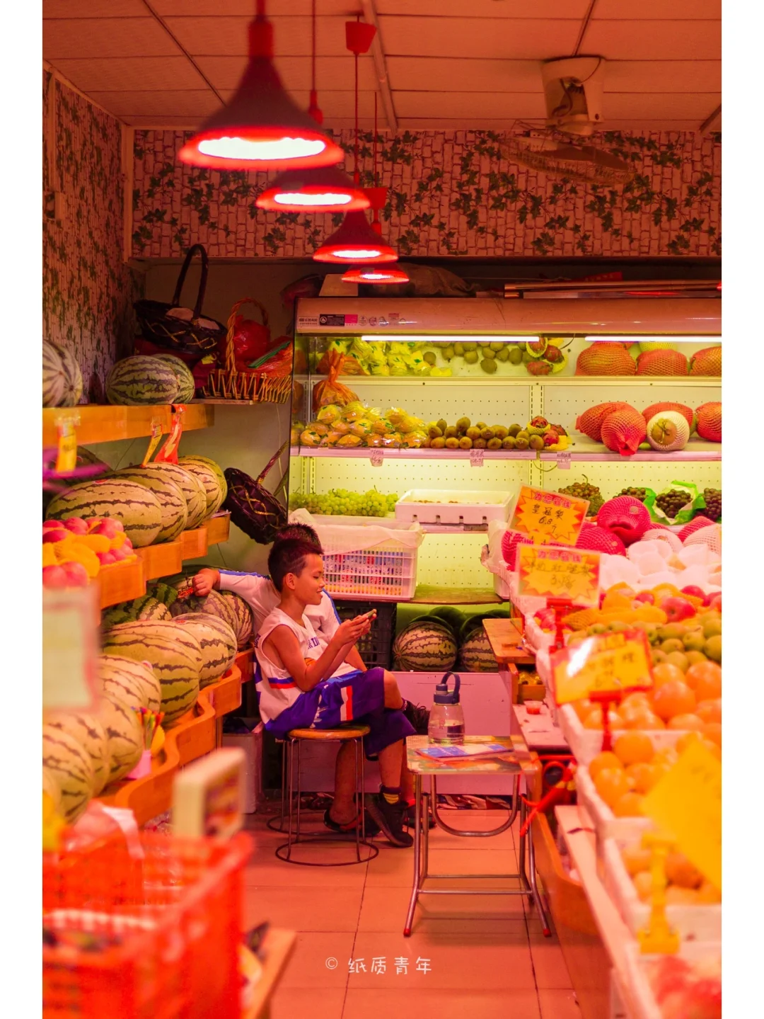 水果店的两个小朋友开心的打着游戏,这个画面第一时间想到了童年时候的自己,小霸王成为了是多少8090后的童年。