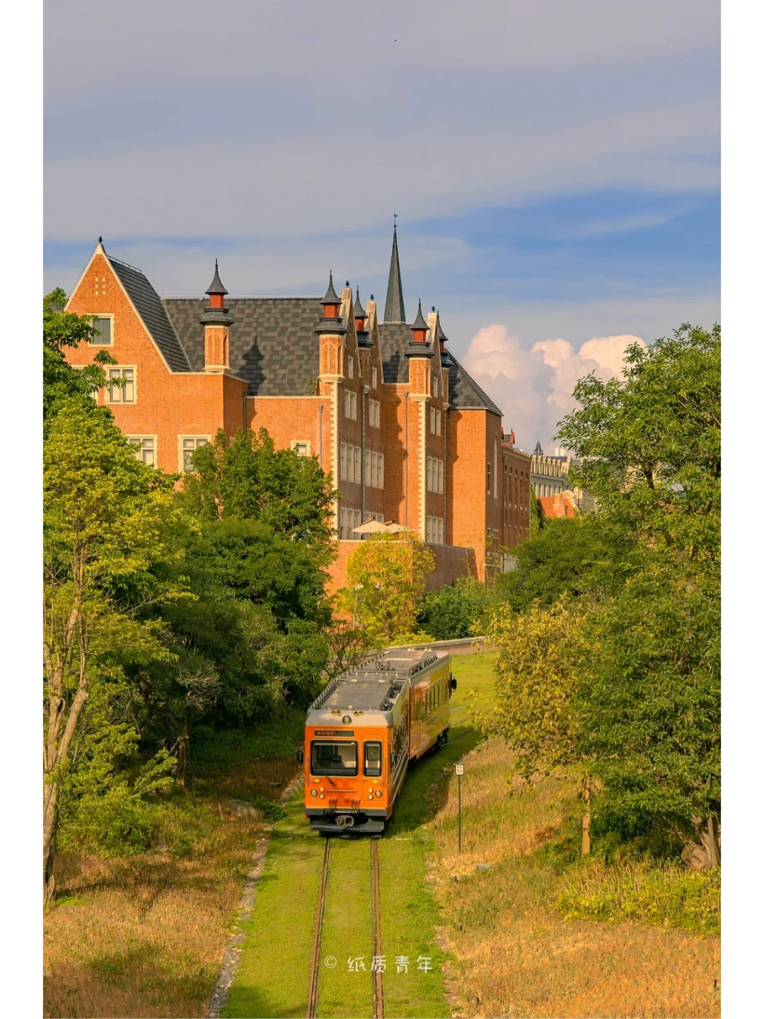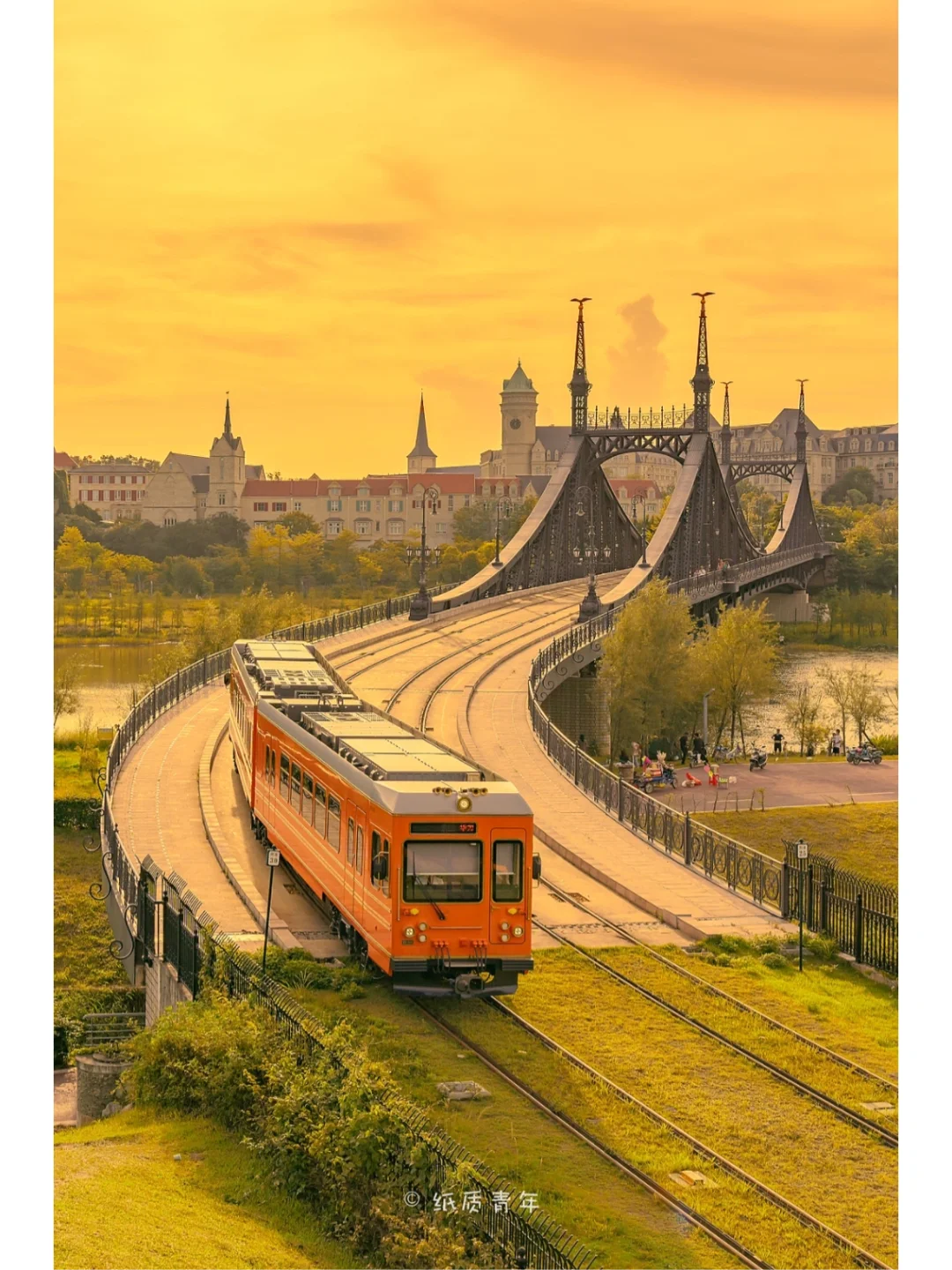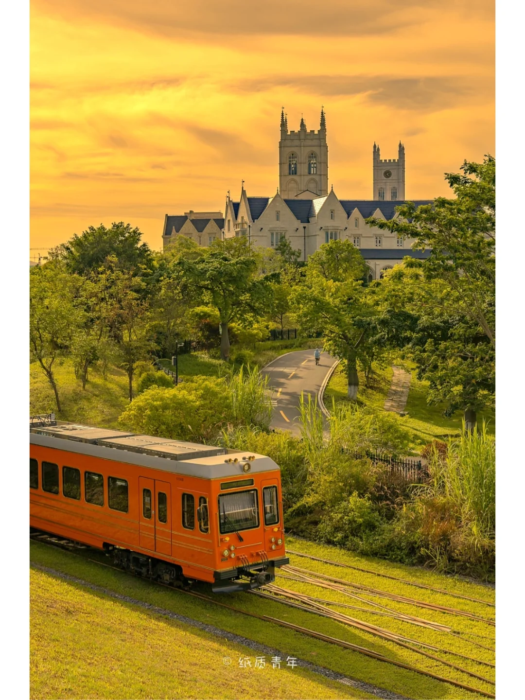 3️⃣P3、P6和P7 是比较热门的机位,在康桥公交站台的位置,结合曲线的铁路桥,欧式小镇的背景衬托,像极了动漫里的场景。小火车的另一头是通往隧道。当然这个机位也可以等日落的时候,更具有氛围感。