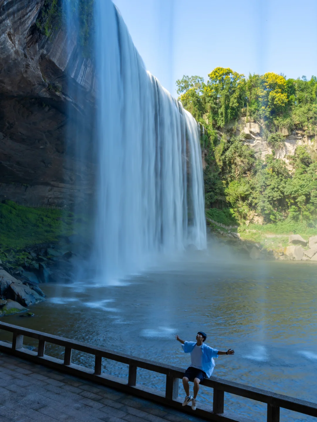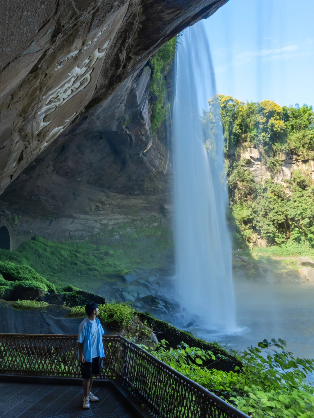 ❷从万州市区过去1小时左右,可自驾,也可从西山车站乘坐前往甘宁、龙沙、武陵方向的客车,在甘宁镇大瀑布标识路口下,步行5分钟即可到达万州大瀑布景区大门。门票:98