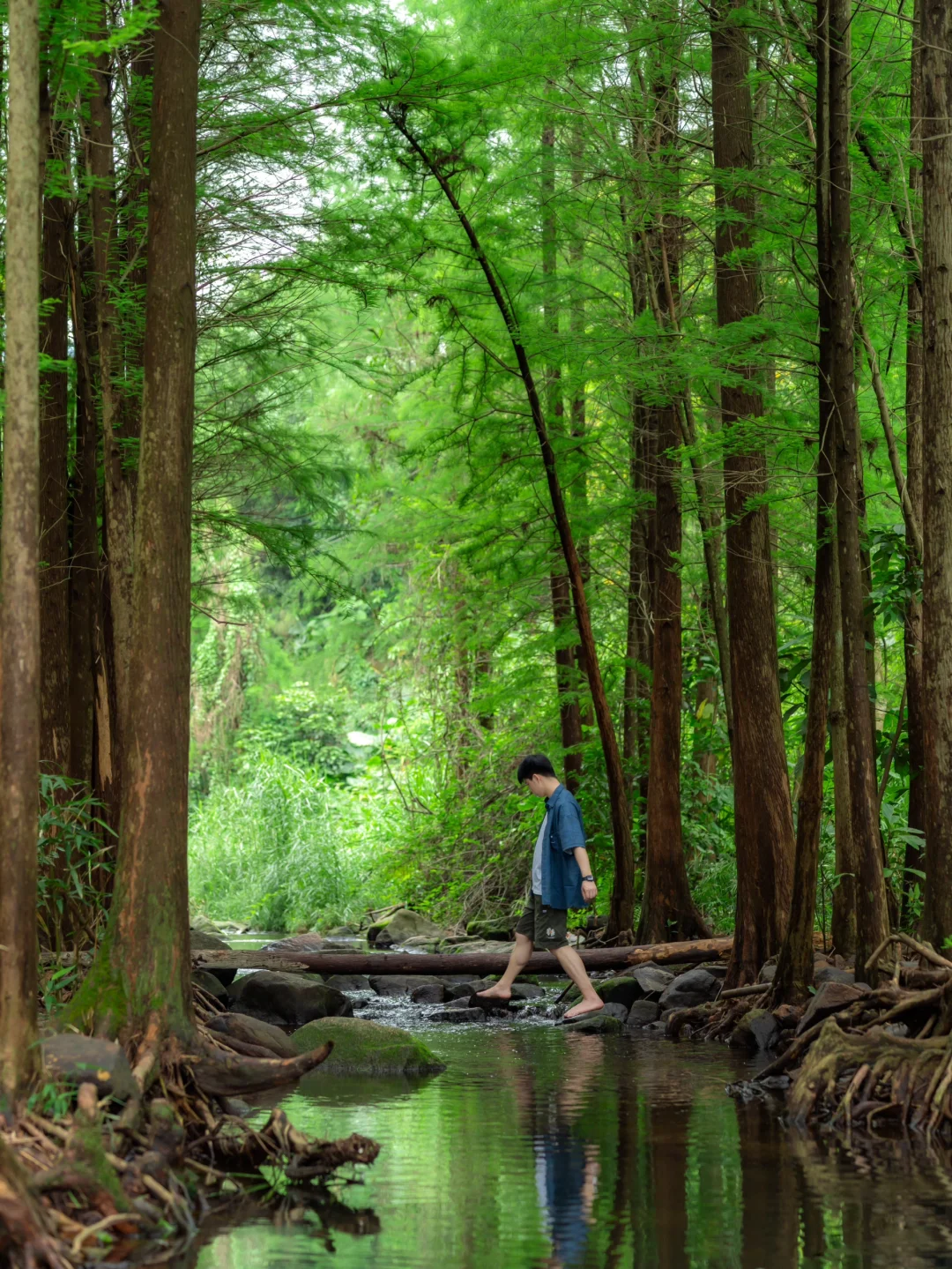 ❹落羽杉溯溪处并不大,主要拍摄点就是两旁的落羽杉和一条河流📷,不到一个小时就能拍完。