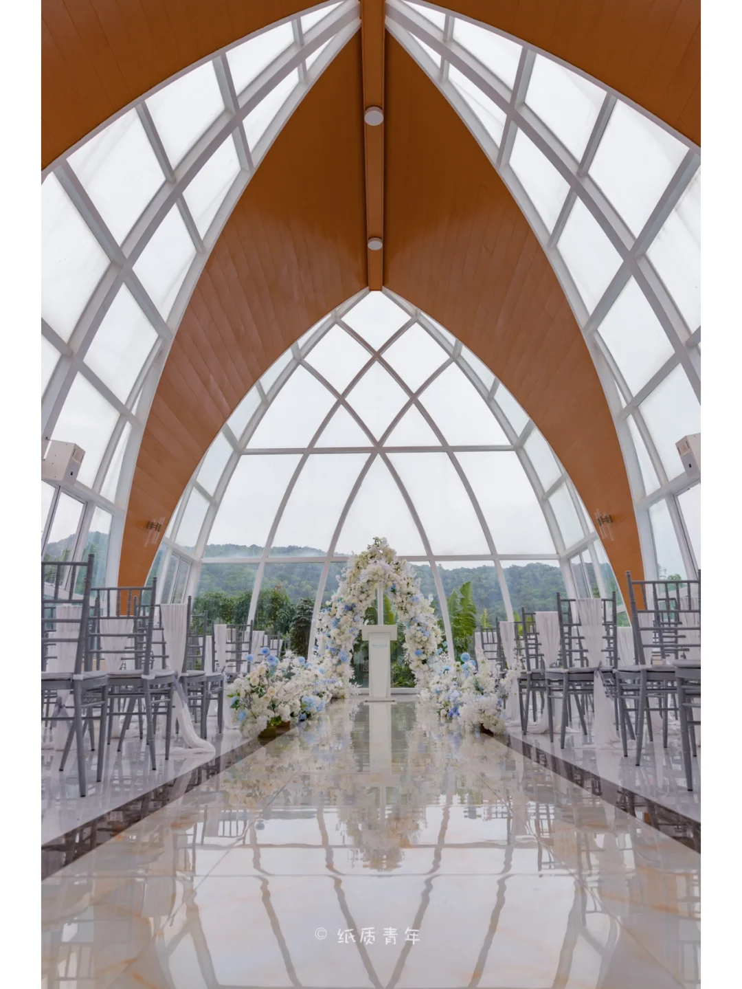3⃣️我最喜欢的是三楼的繁星仪式堂,一比一还原了巴厘岛丽思卡尔顿教堂,建筑美学非常值得称赞,对称式的构图随手就是大片。