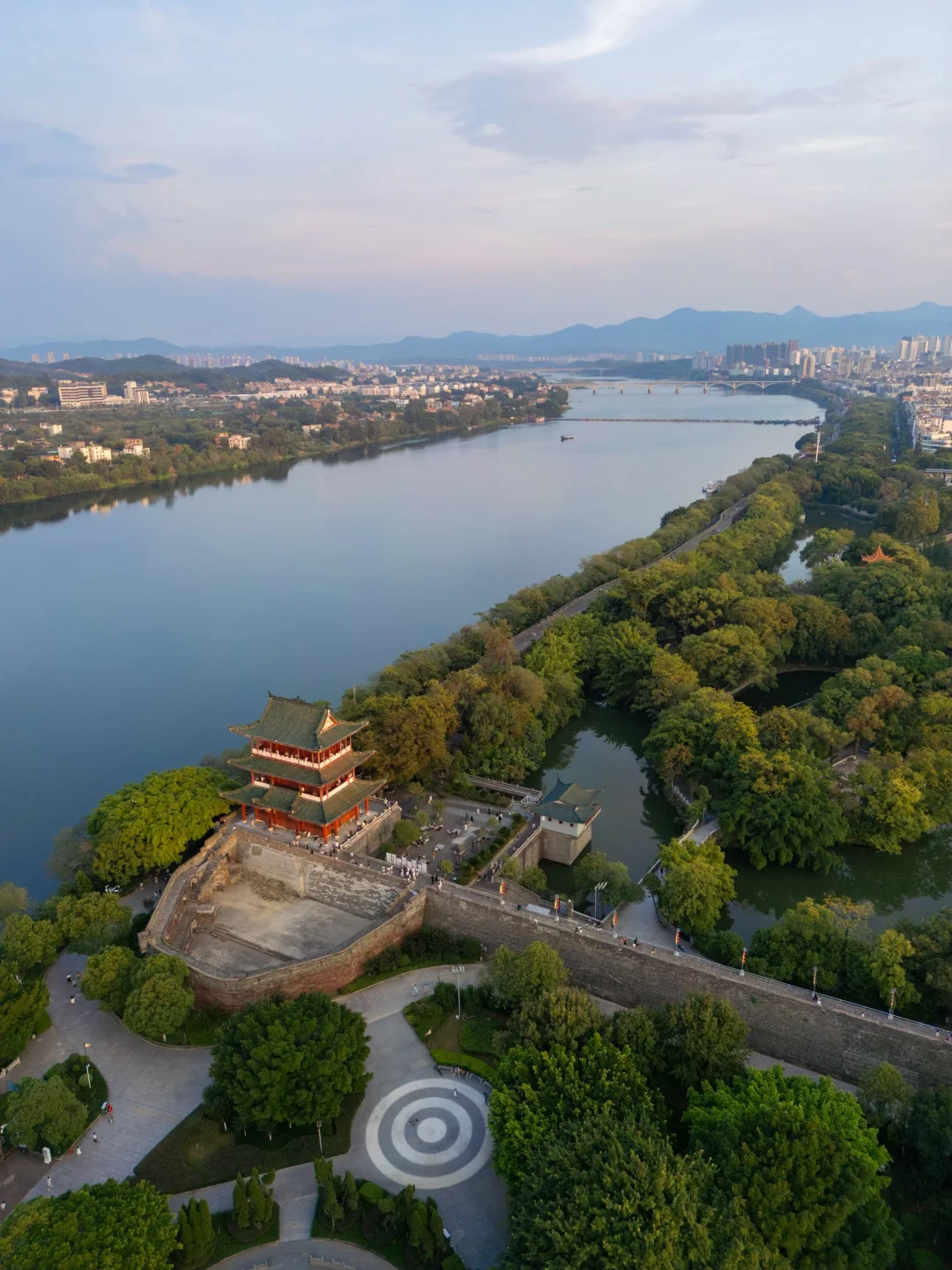 ❺沿着宋城墙走到尽头是宋城地标八境台,俯瞰章水和贡水,也由此得出的赣州。