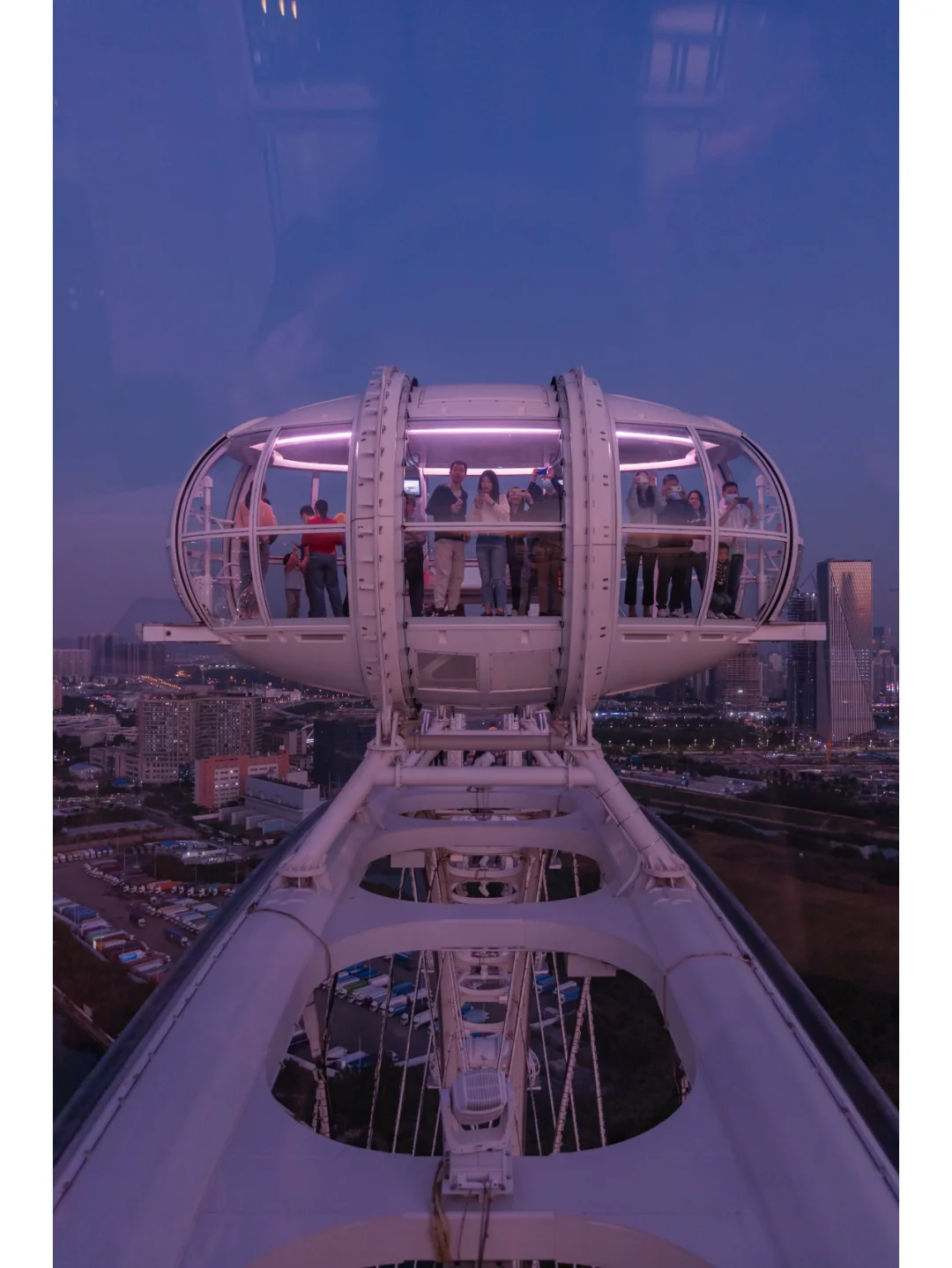 3⃣️6-9的拍摄地很显然是在摩天轮里面拍摄的,🚇地铁5号线临海站B2出口。我会选择在这拍主要是想在这里体验空中心跳,💗在128米的高空中感受自己的心跳,👶🏻这种感受大概就是来自于生命起源的声音吧,这种震撼给了我从未有过的感觉。🌆我选择的是昏昏时间乘坐,🌅这个时候日落刚结束,蓝调时刻迎来了晚霞,💞体验空中心跳的同时也带来了不一样的浪漫。