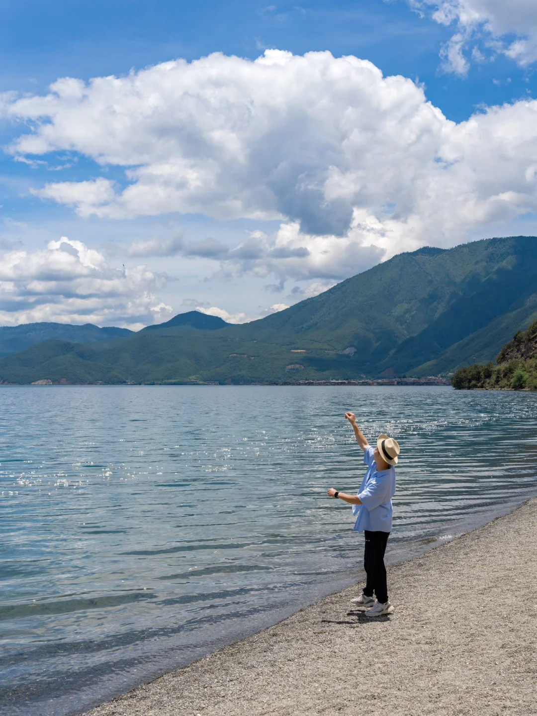 我以为丽江的玉龙雪山已经够火的了🏔️,直到去了泸沽湖🏞️。堪比赛里木湖的水质,开满一整片的水性杨花,沿湖的海景,这大概是泸沽湖该有的模样。
