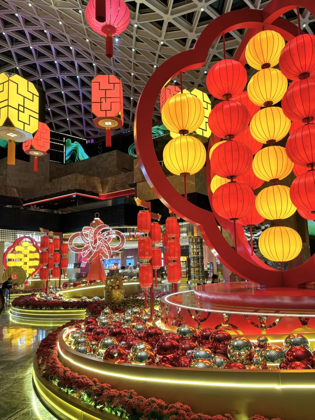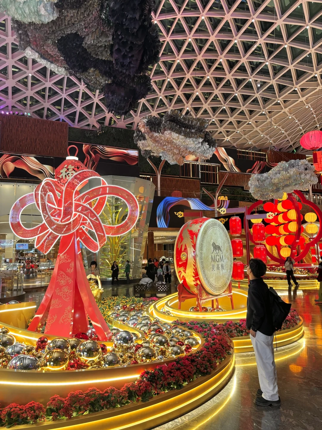 ❸美高梅酒店的新年元素也很值得一看,张灯结彩,满满的年味。